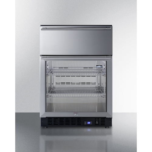 Commercial Built-In Undercounter Glass Door Refrigerator With Top Drawer - SCR615TD Summit