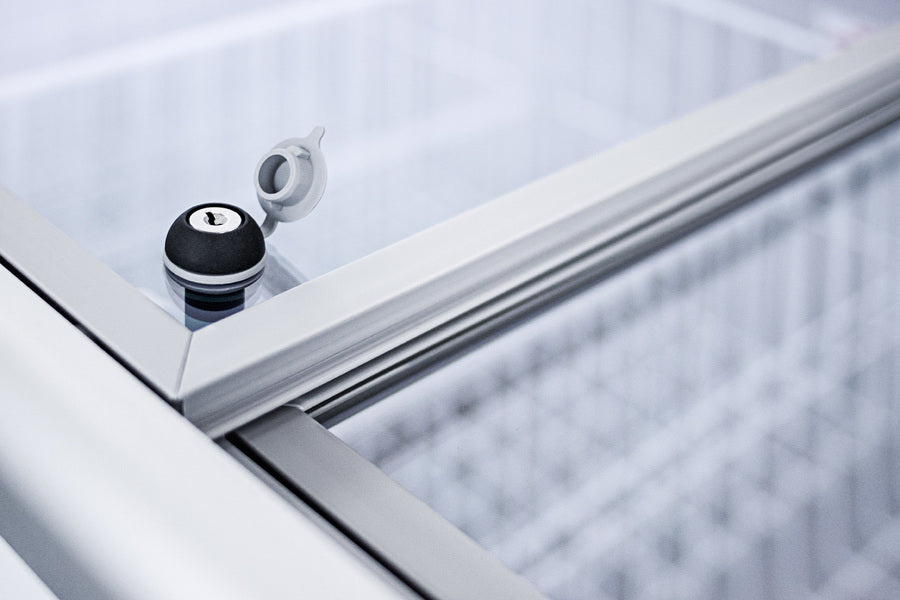 Two tempered glass lids on ball-bearing glides slide open and closed easily for added efficiency