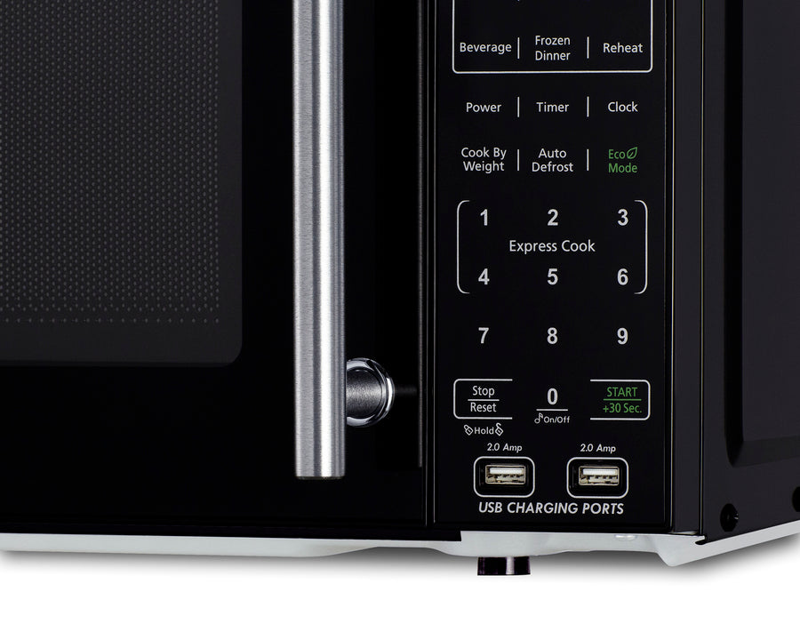 Charge your mobile devices through the pre-installed ports, located on the microwave's front for added convenience