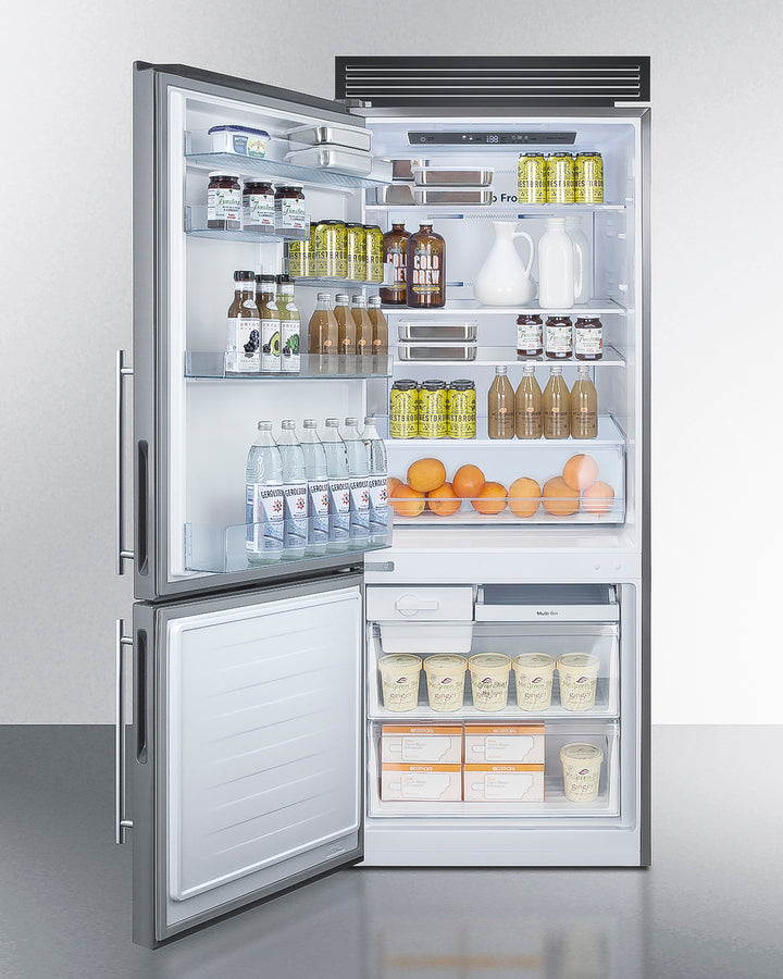 Energy Star Certified Frost-Free Bottom Freezer Refrigerator With Front Handles And Grill To Raise Height To 72'' - FFBF279SSXH72LHD Summit