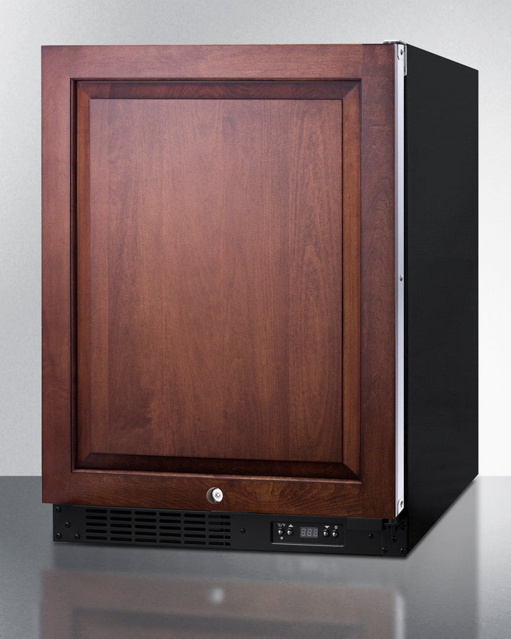 Summit manufactures the industry's largest selection of built-in appliances sized for use under lower ADA compliant counters, including frost-free freezers specially designed to match our popular ADA compliant refrigerators. The ALFZ51IF is a 24 inch wide all-freezer designed and approved for residential or commercial use. The front-breathing design allows built-in installation, while the fully finished black cabinet also enables freestanding use. Sized just under 32 inches high and 24 inches wide, this unit makes an ideal fit under lower ADA compliant counters. The door features an integrated stainless steel frame designed to accept full panel overlays, allowing users to seamlessly blend the unit into their own cabinetry design (panel size: 27 3/4'' H x 23 3/16'' W; 3/4'' thick with a maximum weight of 10 lbs.). The door is factory reversible, and users must supply their own door handle. A temperature alarm offers added security should the temperature go beyond the setpoint, and the optional Sabbath Mode can be used to disable certain electrical features during periods of religious observance for up to 96 hours. The frost-free cooling system keeps the unit running efficiently with little user maintenance, and the internal fan ensures the unit is evenly cooled. Digital controls ensure easy temperature management. Inside, three easy-glide glass shelves that extend 50% provide flexible storage, and the shelving brake system keeps unit contents safe when loading and unloading. Two door racks are ideal for keeping commonly accessed items in easy reach. The dimmable soft LED lighting in a gentle blue hue with three brightness settings offers an attractive and efficient presentation inside the white interior.With its advanced user features and versatile design, the ALFZ51IF is an excellent addition to any ADA compliant setting looking for a frost-free freezer with a modern, elegant look. To create a matching set, pair with the AL55IF refrigerator.