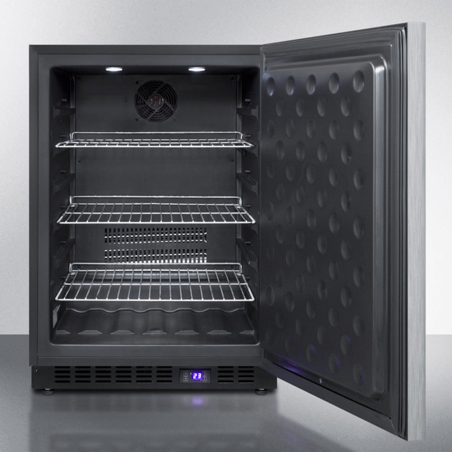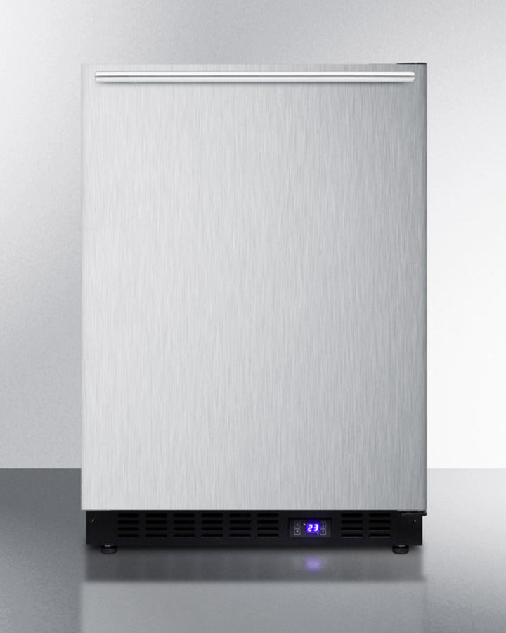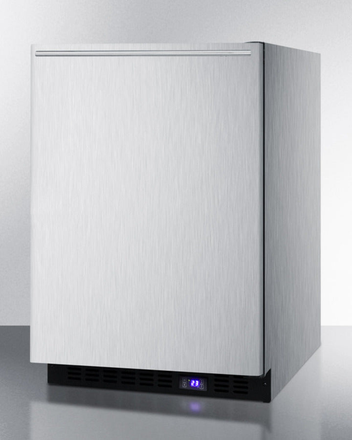 SUMMIT's SCFF53B Series brings quality and convenience under the counter with a fully featured lineup of built-in frost-free all-freezers.Sized with a convenient 24'' footprint, the SCFF53BXCSSHH freezer can be used built-in or freestanding. It has a stainless steel wrapped cabinet and sealed back for easy cleaning. The reversible stainless steel wrapped door includes a thin handle mounted horizontally to complete the modern look.Inside, the SCFF53BXCSSHH utilizes frost-free operation with fan-forced cooling to ensure low maintenance and even temperature distribution. Recessed LED lighting offers an attractive yet efficient look. The digital thermostat makes it easy to manage the interior temperature. This unit includes adjustable chrome shelves for flexible storage. Additional features include an open door alarm, high temperature alarm, and Sabbath mode setting that lets you disable some of the electrical elements during periods of observance.The SCFF53BXCSSHH freezer is ETL-S listed to NSF-7 commercial standards. With its deluxe style and user-friendly features, this unit is the perfect choice for home or commercial kitchens. For a matching frost-free all-refrigerator, see the FF64BXCSSHH.