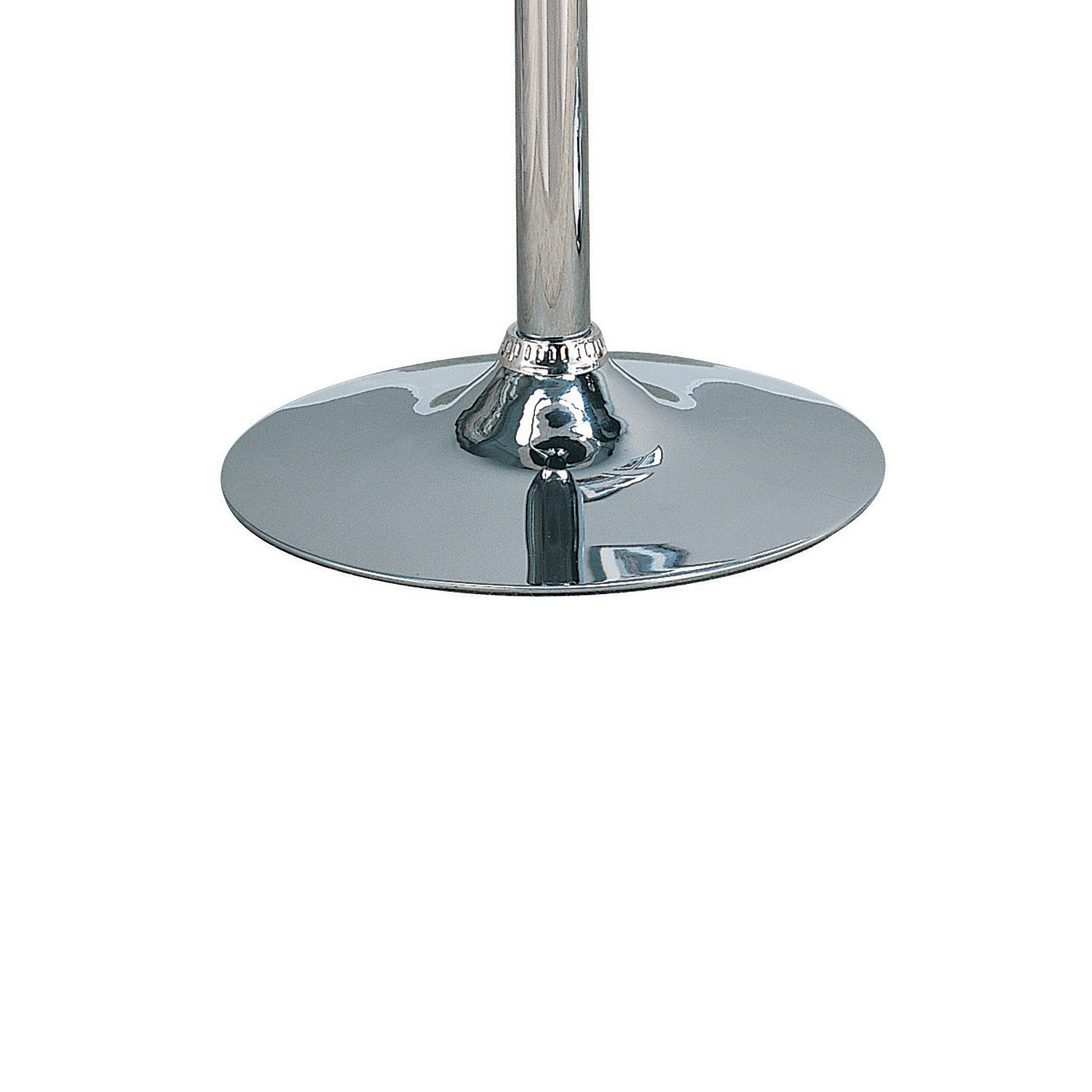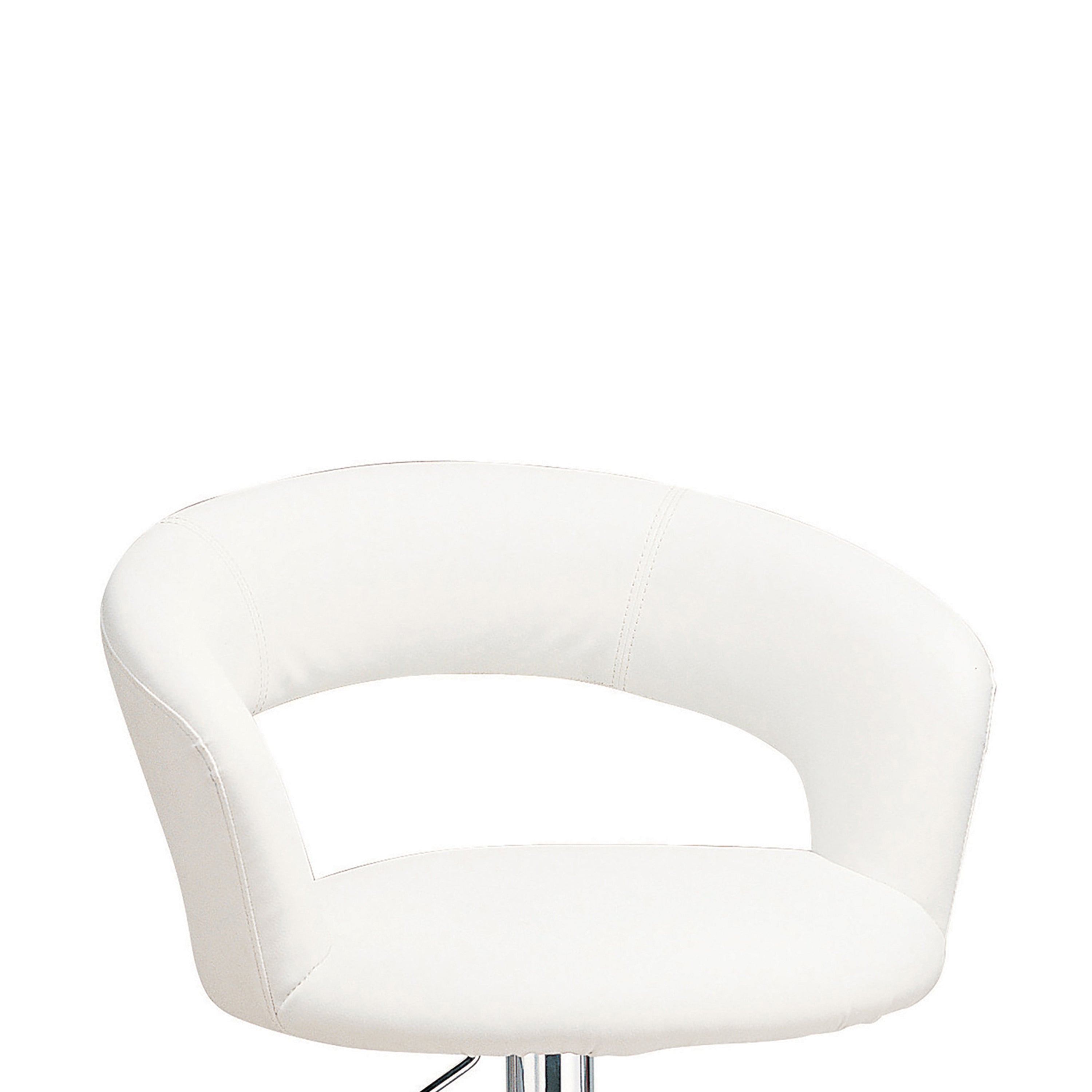 This cool Contemporary One-Piece faux leather bar Stool will be a stylish addition to your casual dining and entertainment area. The plush curved stool back and seat are covered in a rich faux leather in white to complement your taste. A shiny steel base with a high polished chrome finish supports the Stool, with an adjustable height mechanism and round footrest below for comfort. Transform your home into a fun hangout with this stylish bar stool.