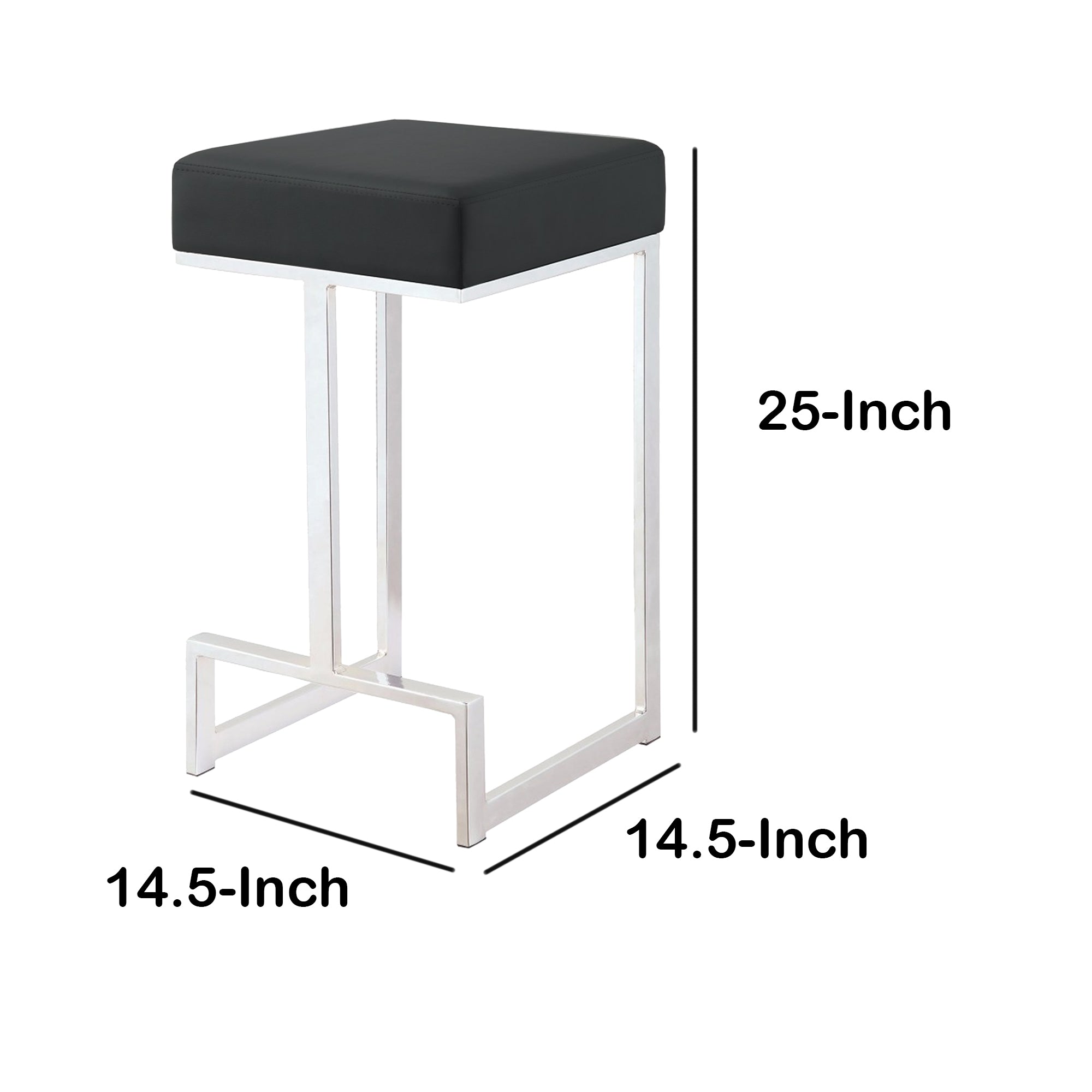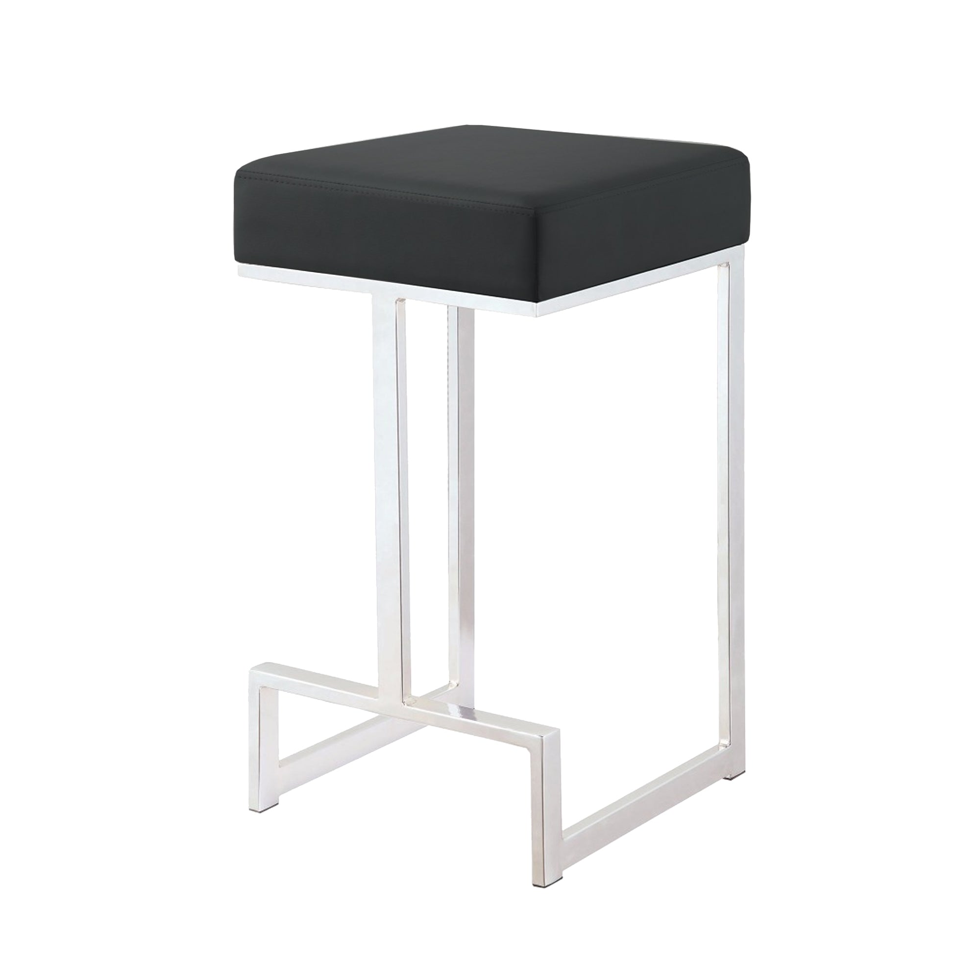 Accessorize your pub table, home bar or kitchen island with this striking 24'' Counter Height Stool. The solid stainless steel frame provides a sturdy base, while the plush seat ensure maximum comfort. With a chrome finish and smart black leatherette this sleek counter height stool will be an eye catching addition to your dining or bar area. The footrest is incorporated into the design, adding an angular component to the frame contributing to a more contemporary design. Offered in an arrange of colors, you are sure to find one to uplift your space.