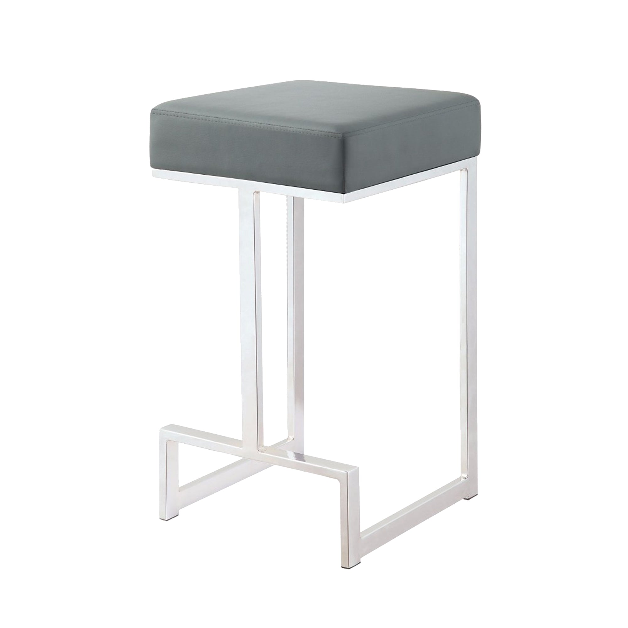 Accessorize your pub table, home bar or kitchen island with this striking 24'' Counter Height Stool. The solid stainless steel frame provides a sturdy base, while the plush seat ensure maximum comfort. With a chrome finish and smart gray leatherette this sleek counter height stool will be an eye catching addition to your dining or bar area. The footrest is incorporated into the design, adding an angular component to the frame contributing to a more contemporary design.