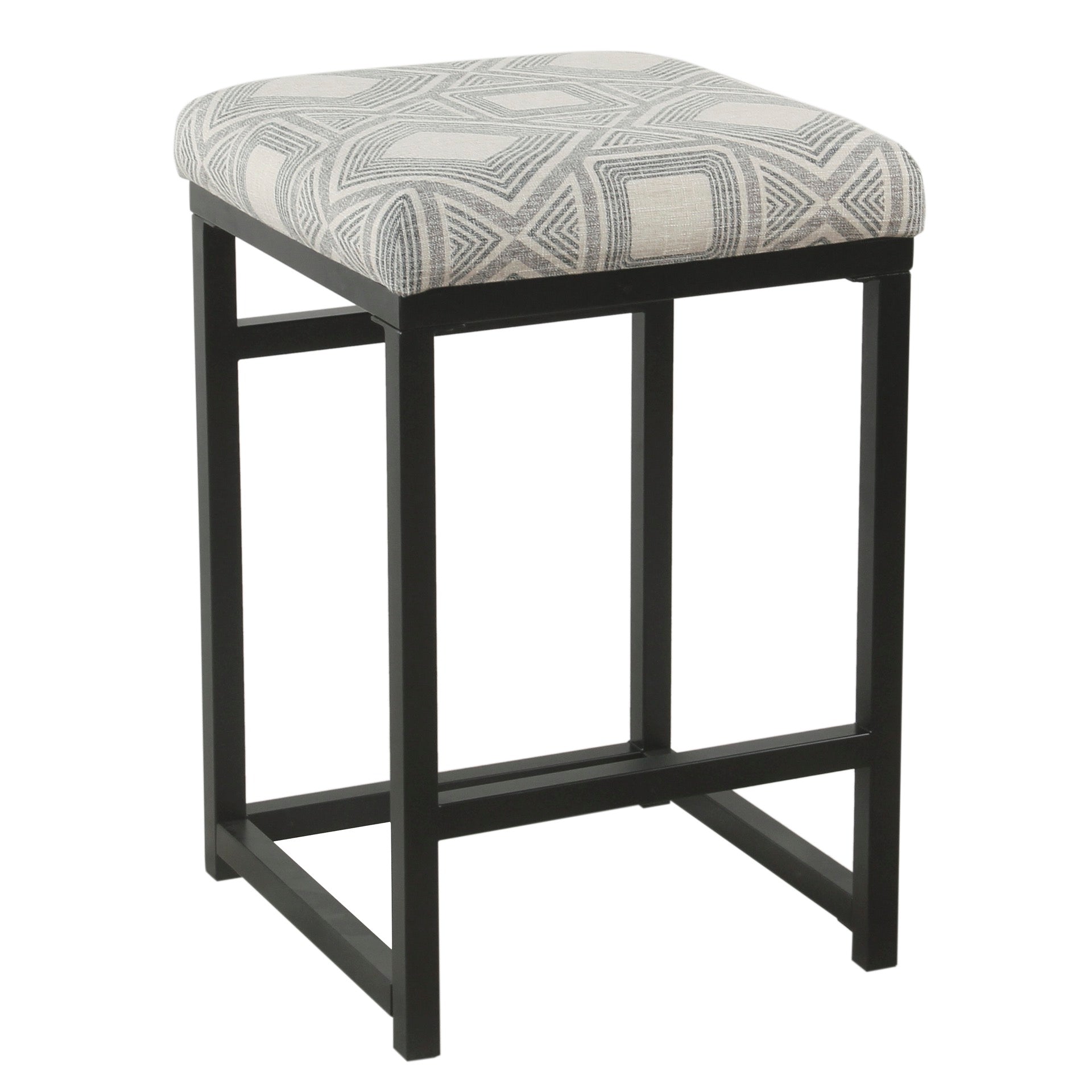Metal Counter Stool with Geometric Pattern Fabric Upholstered Seat Gray and Black BM195160 - Benzara