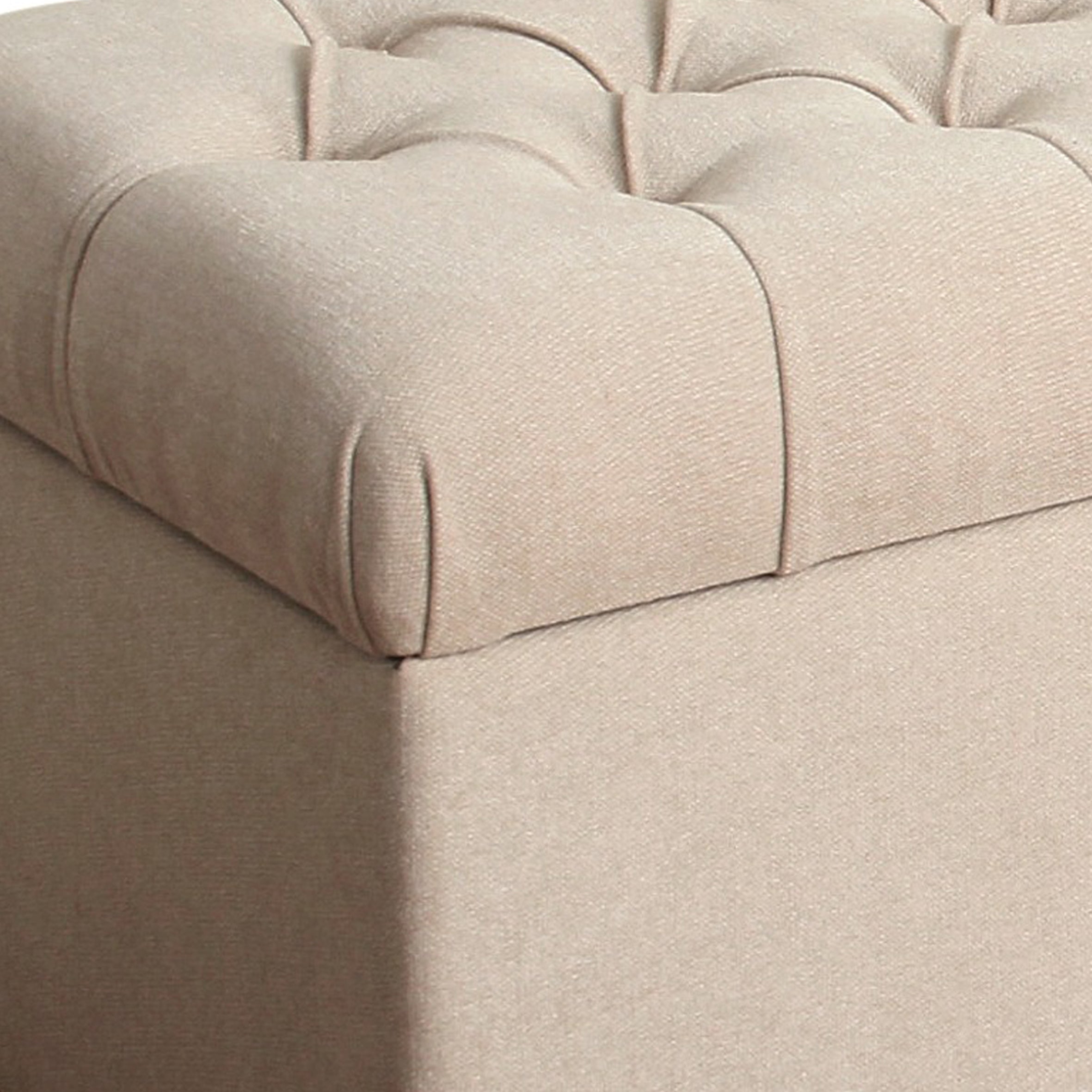 Fabric Upholstered Button Tufted Wooden Bench With Hinged Storage Cream and Brown BM195761 - Benzara
