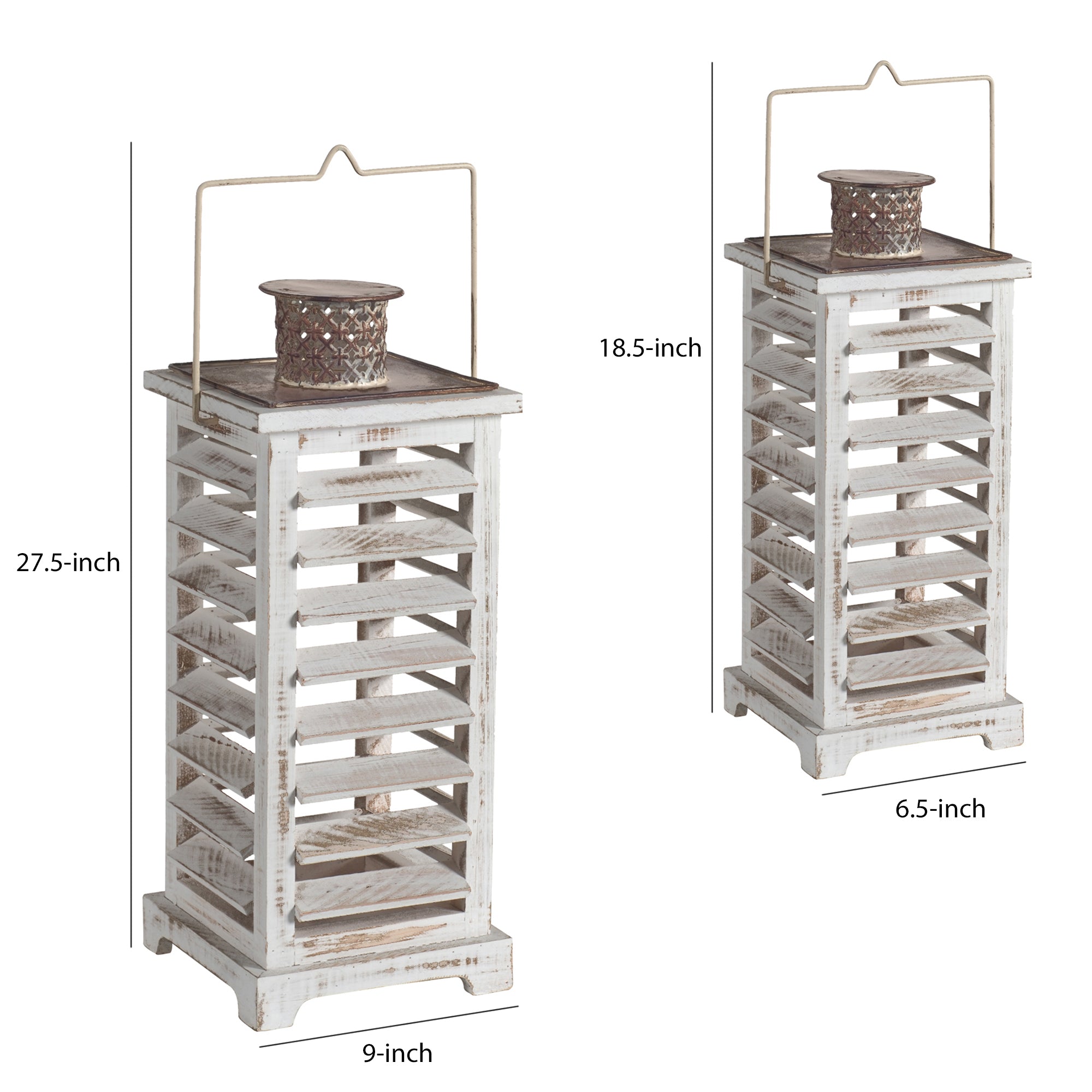Wood and Metal Lanterns with Louvered Design White Set of 2 BM200913 - Benzara