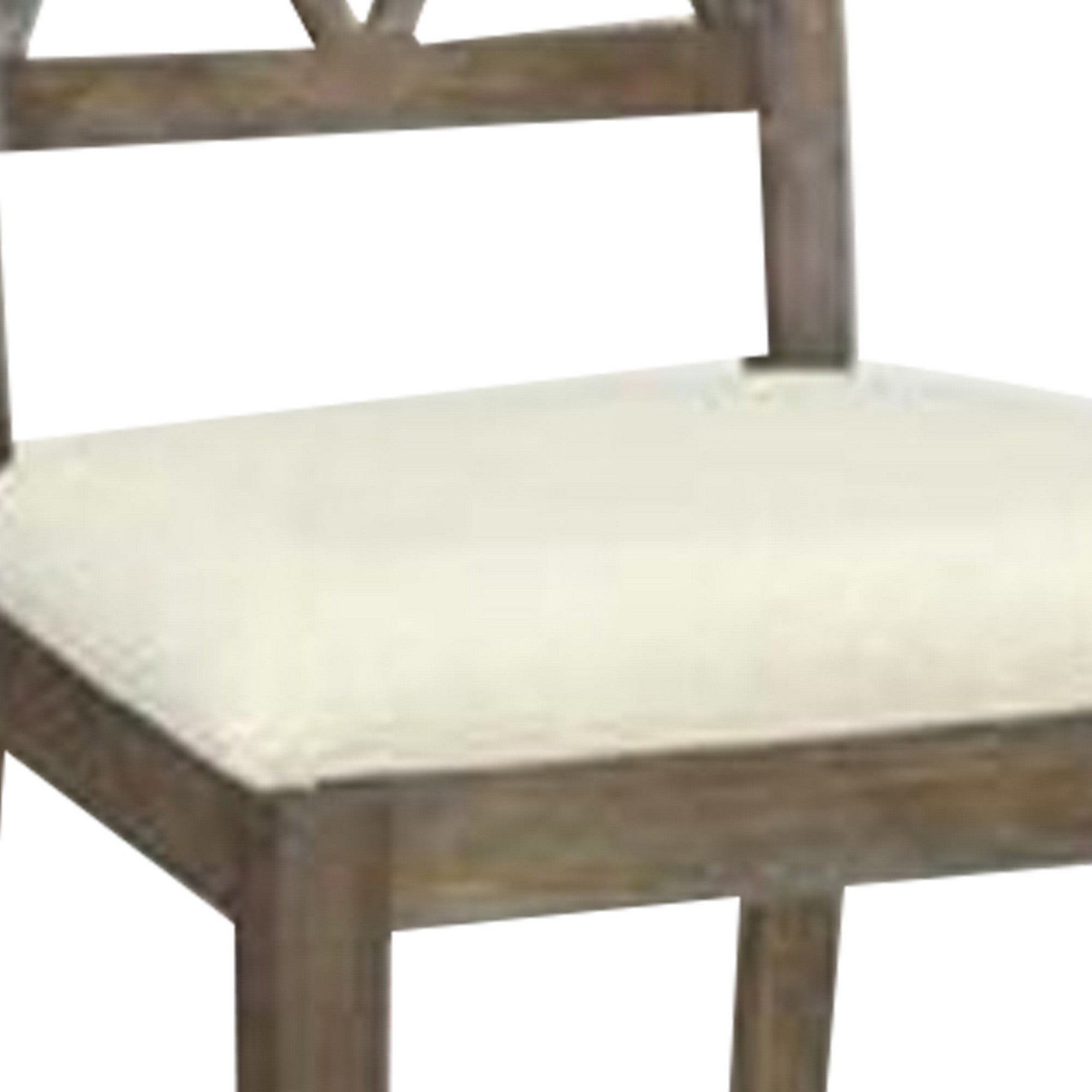 Bring a classic touch of rustic style to your dining room or kitchen with this two side chairs set. Founded on four legs, the frame of these chairs are made from wood and veneer in a brown finish with an open double X back for a rustic charm, while their fabric upholstered padded seats provide a comfortable sitting experience.