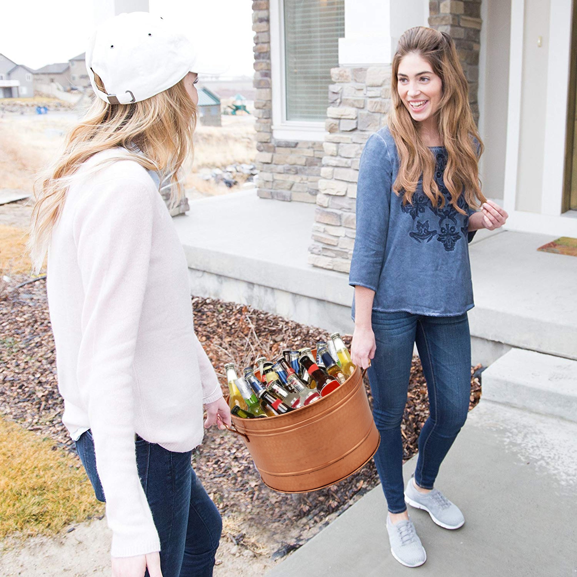 Old fashioned but yet modish, this galvanized tub provides a great usage. It is made up of metal and accented with copper finish with a dense hammered pattern. The side handles offer easy carrying while it has a weight capacity of 15 litres that makes it perfect for filling ice during parties or for holding firewood next to the fireplace.