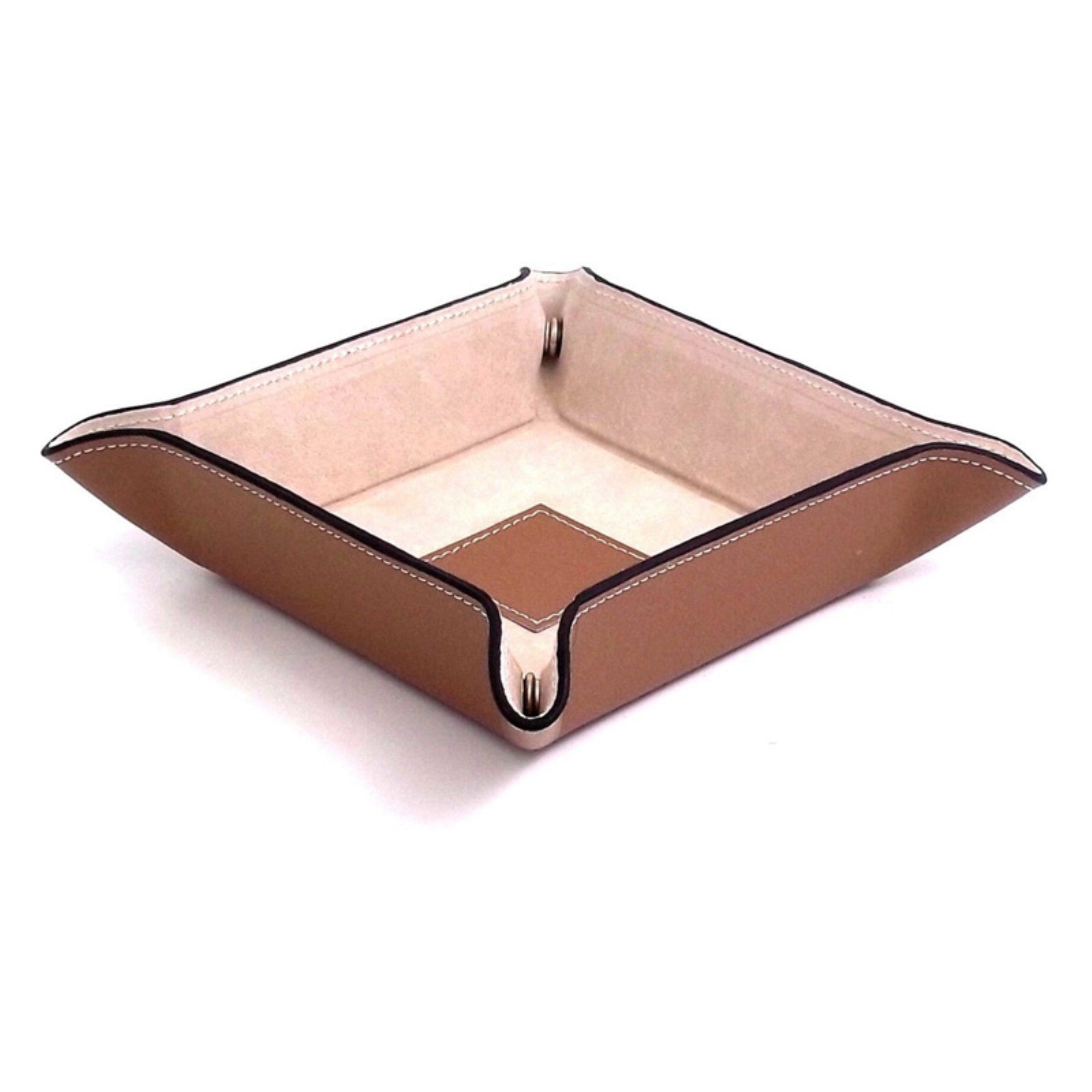 Bey-Berk International BB500M Leather Snap Valet Tray with Pig Skin Leather Lining, Taupe