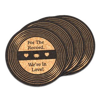 Ducky Days 8497189 4 in. Dia. For the Record We are in Love Vinyl Record Cork Coaster Wedding Favors - Set of 4