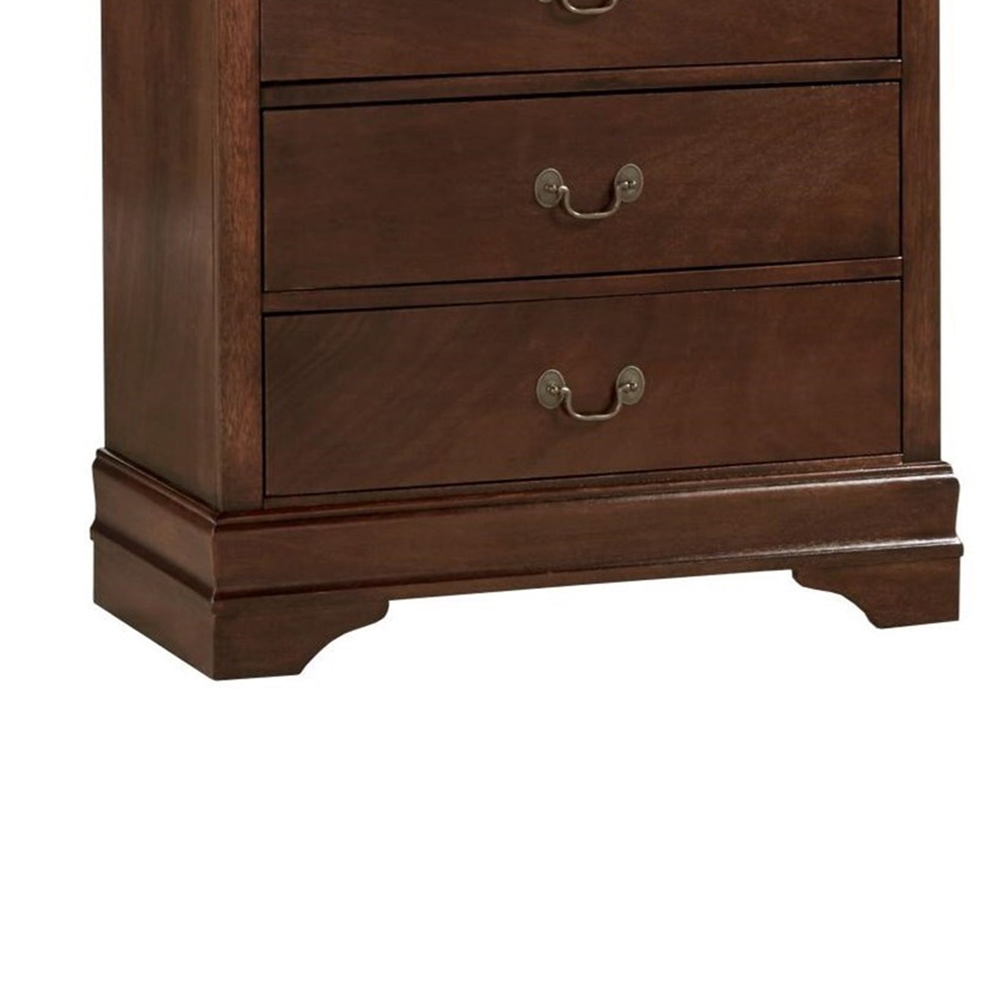 5 Drawer Wooden Chest With Metal Hardware Cherry Brown BM181935 - Benzara