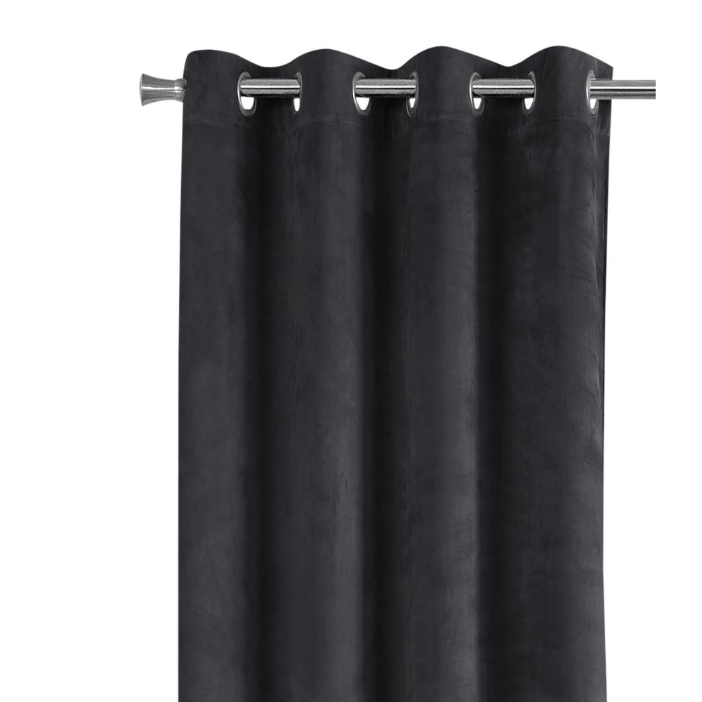 Bring a subtle luxe look to a room with this set of two room darkening curtain panels in a soft velvet finish that is machine washable. Each 52W x 84H curtain panel is made from room-darkening material to help filter out the light giving a cozy ambiance to a space. The 8 silver metal grommets on each panel makes it a quick setup and the simple elegant lines of these grey curtains are versatile enough to hang in a livingroom bedroom or dining room. Curtain rod not included and must be purchased separately. Product Specs: Product Height: