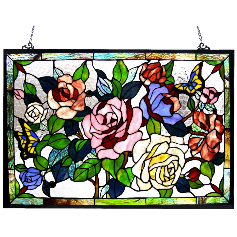 Tiffany-glass featuring Roses & Butterflies Window Panel 27x19 - CHLOE Lighting