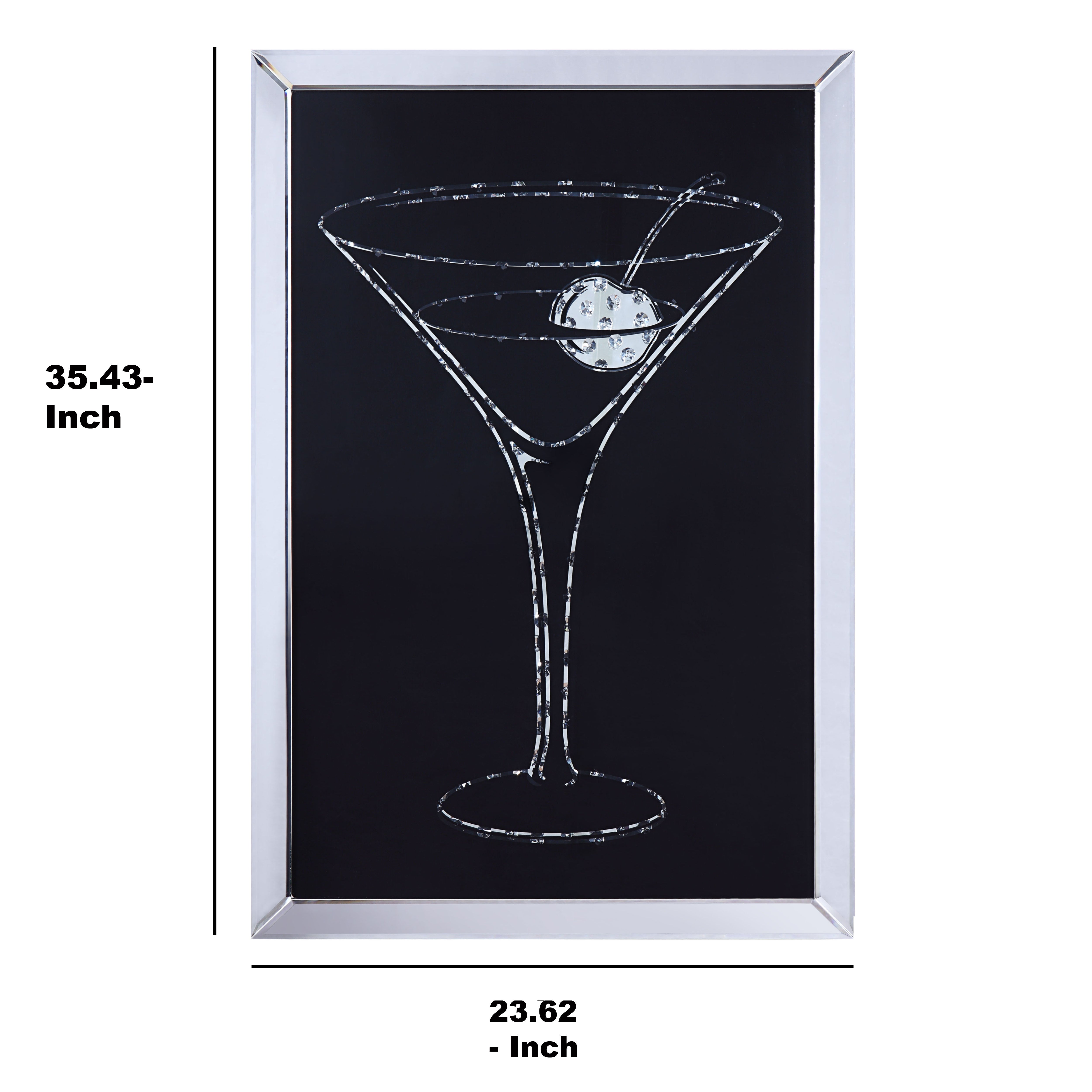 Wood and Mirror Martini Glass Wall Art Clear and Black BM196002 - Benzara