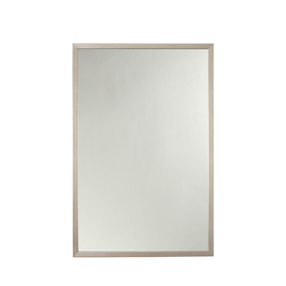 Add a touch of simplicity to your home with this 33 inch tall, vertical wall mirror with a painted silver finish. The frame is made out of polystyrene, and compliments the mirror very well. This mirror would look wonderful in a bedroom, bathroom, and hallway.
