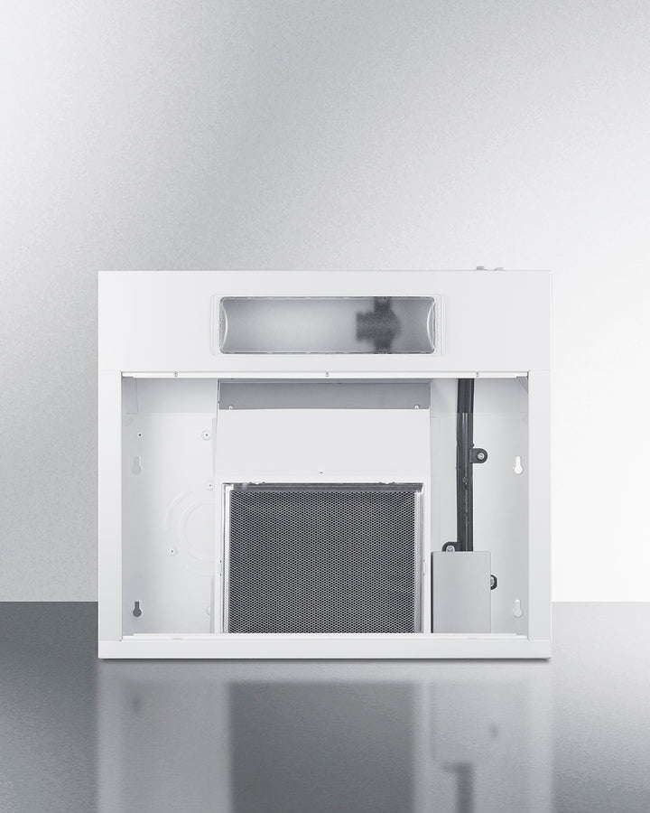 Made in North America, Summit's HC series under cabinet convertible range hoods offer versatile ventilation solutions for every kitchen space.Model HC24WW is a 24'' wide range hood ideal for apartments and other smaller kitchens. It comes in a clean white finish constructed from 21 gauge galvanized steel for a clean look and durable design. The powerful 2-speed fan is easily managed by a rocker switch with a high and low setting. This unit can operate at 200 CFM for thorough ventilation. Airflow is directed upwards at a slight angle, ensuring smoke and odors won't blow towards the home chef.This hood ships for ductless/recirculating ventilation (where no exhaust connection to the outside is available) but is convertible for horizontal or vertical ducted ventilation (3 1/4'' x 10'' rectangular ducting or 7'' round, transition required). We include a combination aluminum mesh/charcoal filter to absorb grease, smoke, and odors. This unit accepts a standard light bulb (not included). Both the filter and lens cover snap in place, with no tools required to change out as needed. Note: this hood does not include a power cord and is designed to be hard-wired by a licensed professional. In addition to this range hood, Summit manufactures this series in additional colors, as well as shell hoods, wall-mounted European hoods, and island hoods in a range of styles. Browse the full Summit product line to explore your options.