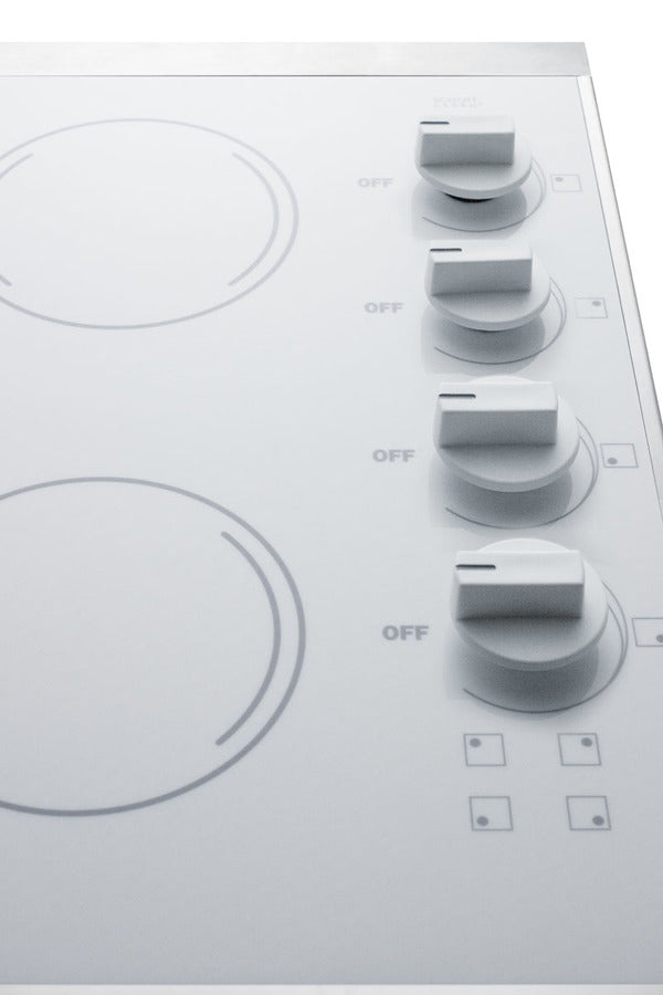 24'' Wide 4-Burner Radiant Cooktop Made In The Usa, With One Large 8'' Element And Three Standard Elements In Smooth White Ceramic Glass Finish And Oversized Ss Trim - CRS426WH Summit