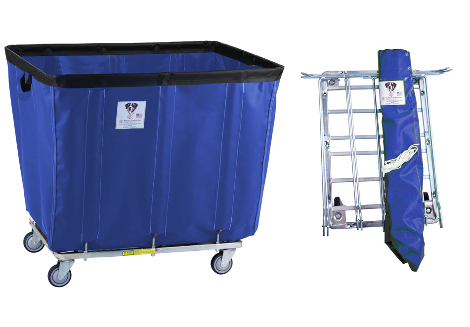 R&B Wire Products 412KDC-BL 12 Bushel UPS & FEDEX ABLE Vinyl Basket Truck All Swivel Casters, Blue - 38 x 28 x 35 in.