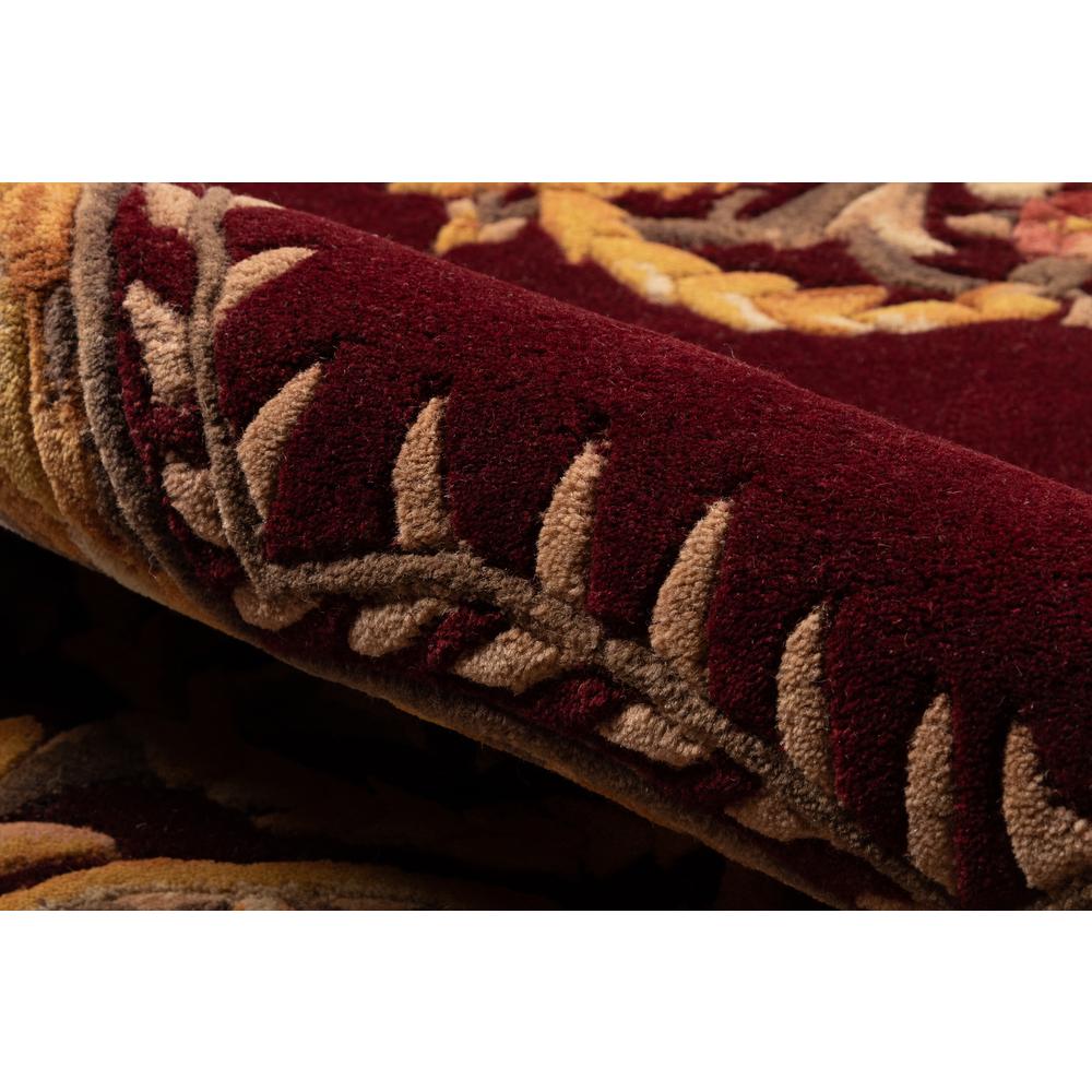 The antique-style embellishment of this traditional area rug adds ornamental flourish to floors throughout the home. Available in royal shades of sage green, soft blue, ivory, rose and regal burgundy red, the ornate gold scrolls and scallops of each decorative floorcovering reflect the gilded grandeur of French baroque style. Hand tufted from 100% natural wool fibers, the curling vines and lush floral bouquets of the borders are hand carved for exquisite depth and dimension. Product Specs: Product Height: