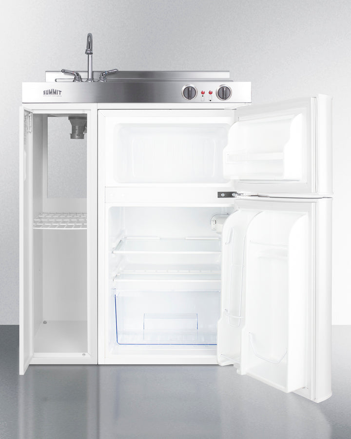 30'' Wide All-In-One Kitchenette With 2-Burner 115V Coil Cooktop, Refrigerator-Freezer, Sink, And Storage Cabinet - C30EL Summit