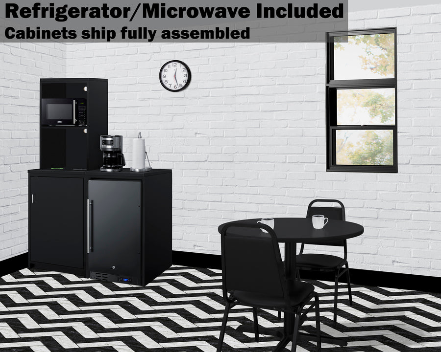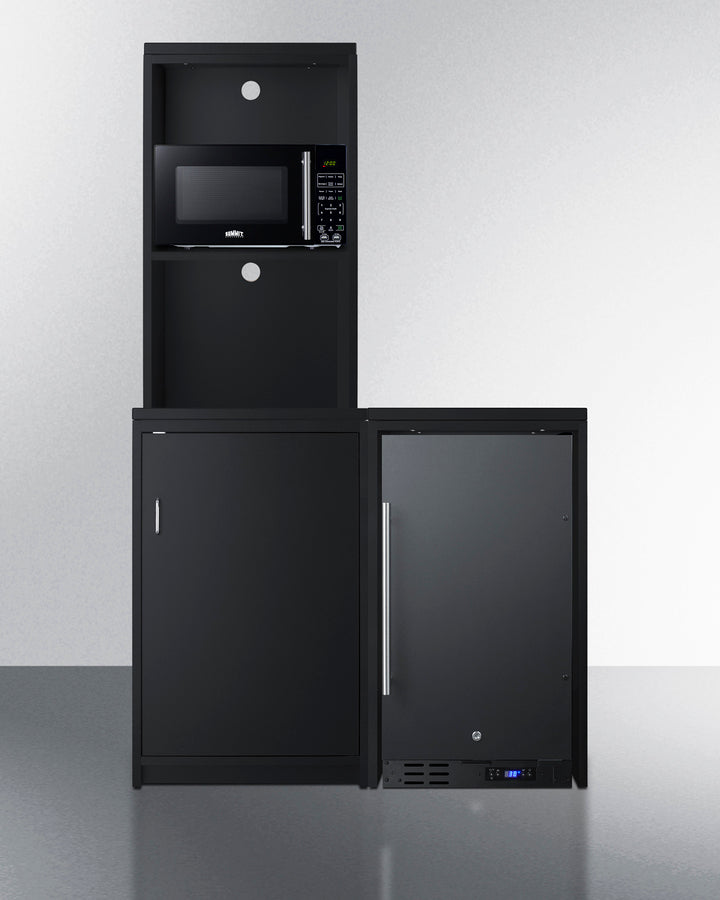 Includes FF1843BADA refrigerator, CWR2ADA refrigerator cabinet, SM903BSA microwave, CWC5ADA trash cabinet, and CWH1 hutch