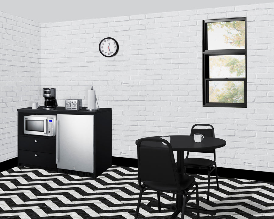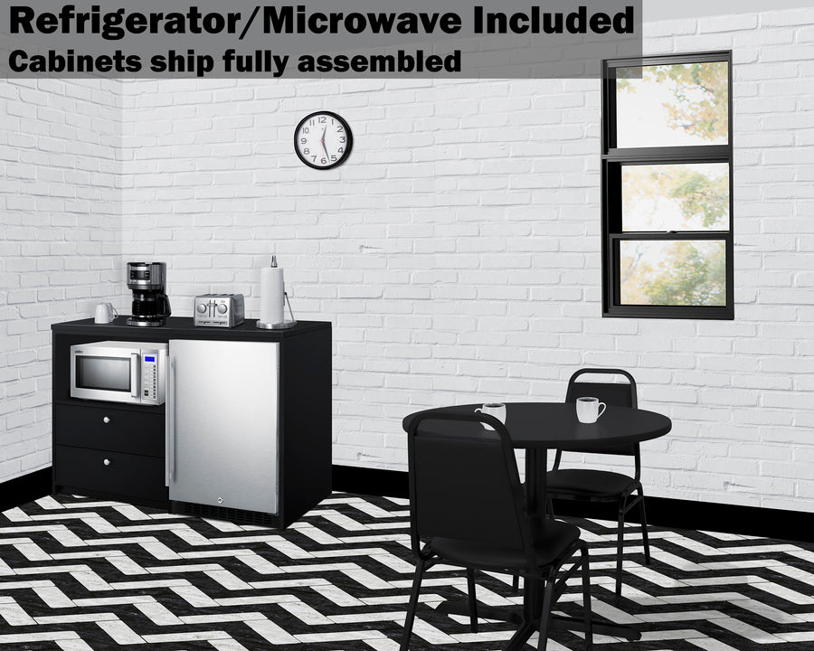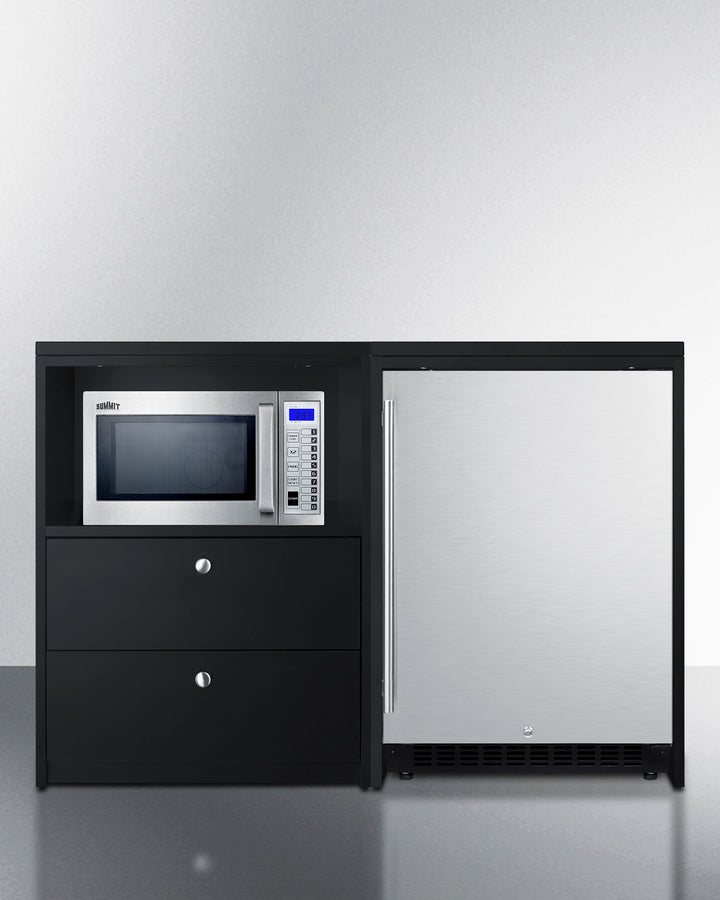 Includes AL54 refrigerator, CWR4ADA refrigerator cabinet, SM1000SS microwave, and CWM2ADA cabinet with drawers