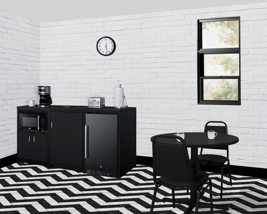 Sleek black laminate finish on the cabinet pieces suits any setting
