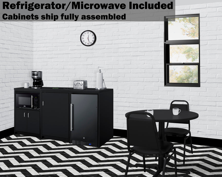 Includes FF1843BADA refrigerator, CWR2ADA refrigerator cabinet, SM903BSA microwave, CWC5ADA trash cabinet, and CWM1ADA storage cabinet