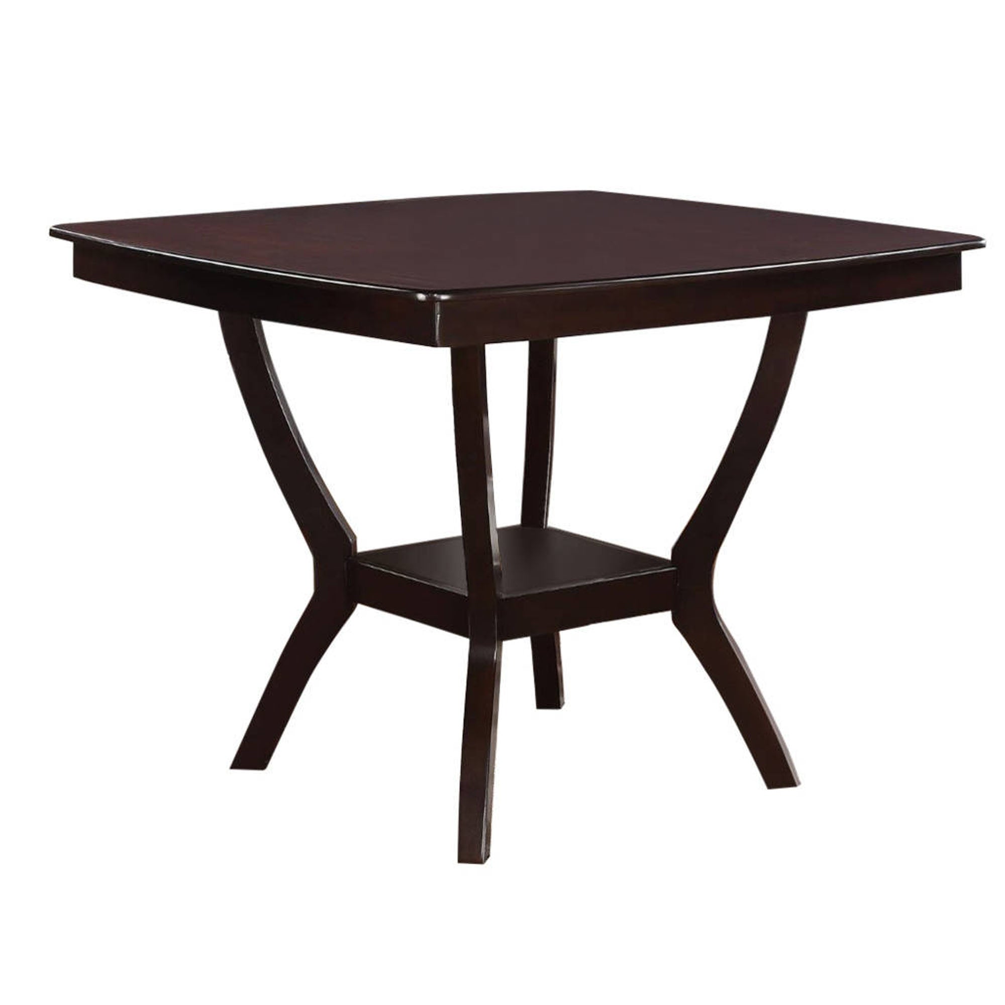 A Strong Design Of Bold Lines And Dark Hues, This Counter Height Table Crafted With Rubber Wood, Particle Board With One Shelf Underneath. The Brown Finish Of This Table Gives An Expression Of Its Presence More Effective For Any Living And Dining Room. Dimension: Table: 42'' X 42'' X 36''H (Primary Color: Brown)