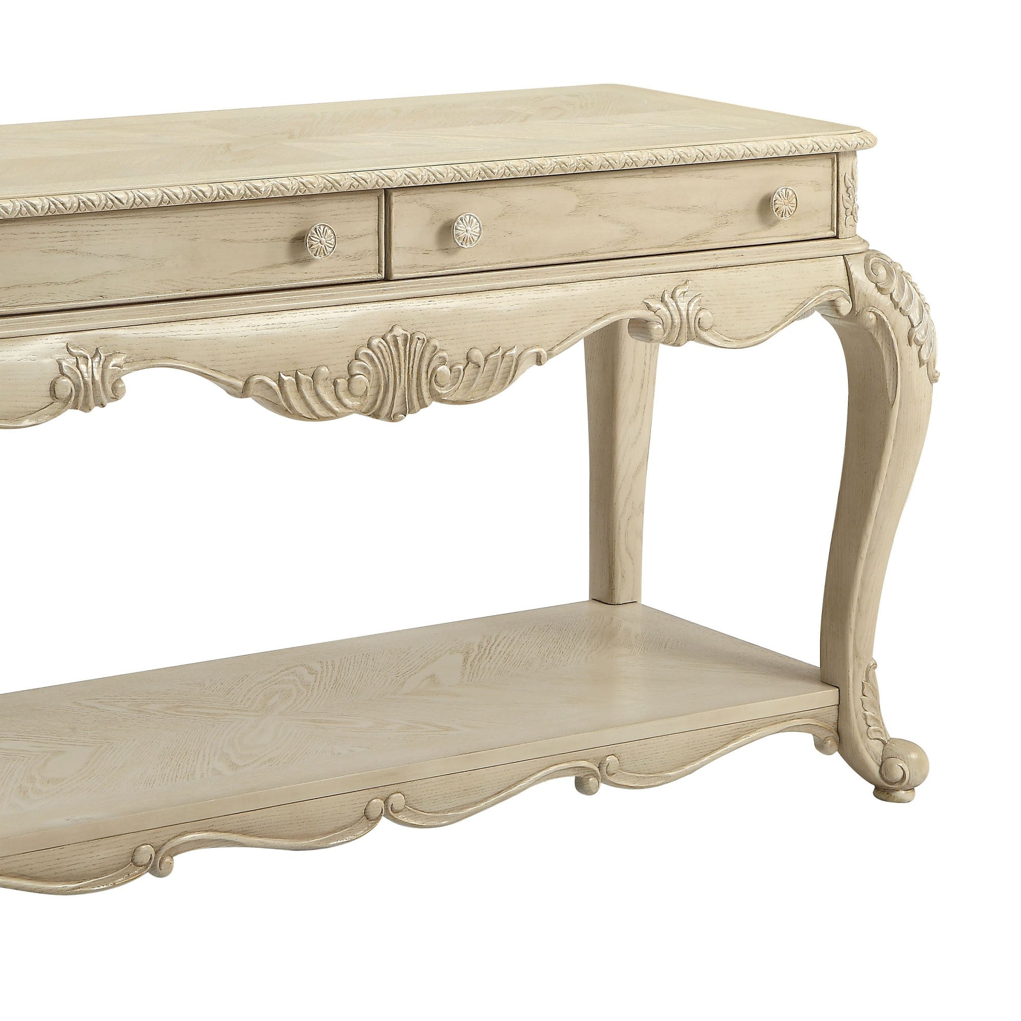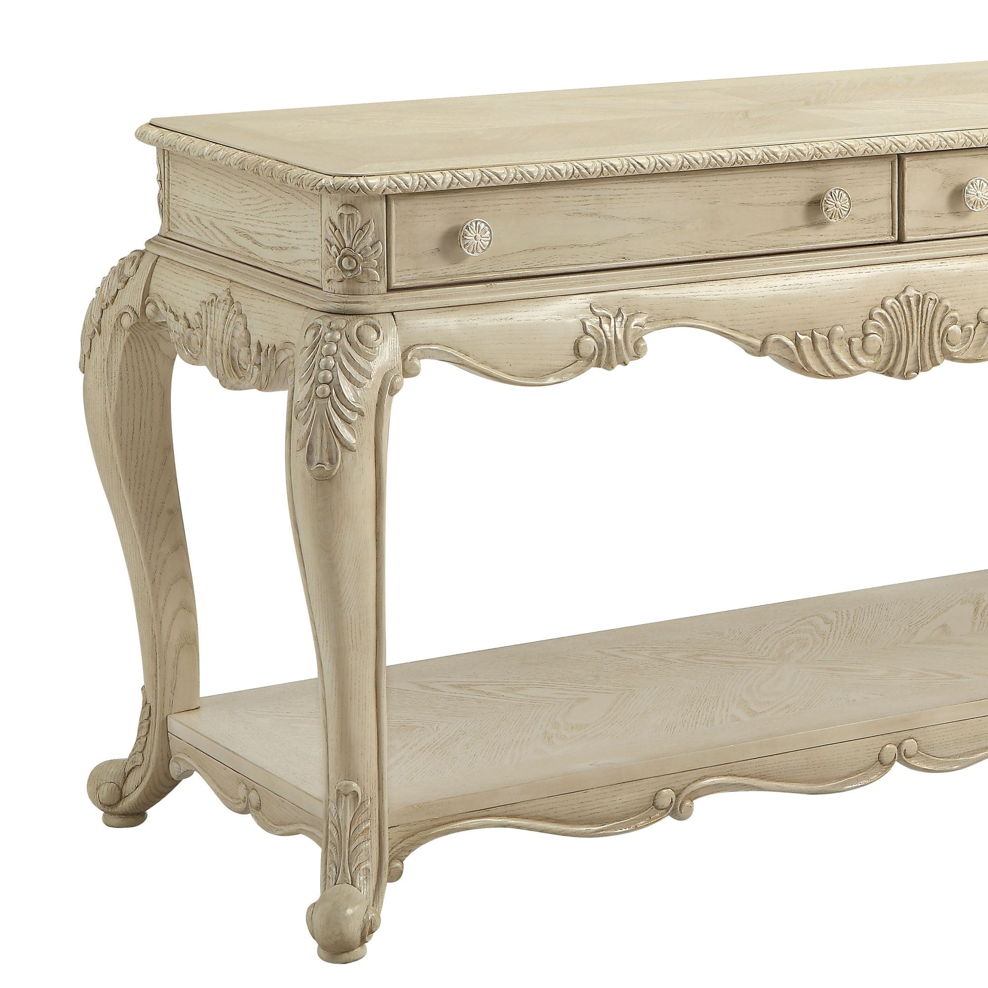 Vintage Style Wooden Sofa Table with Two Drawers and One Open Shelf White BM191258 - Benzara