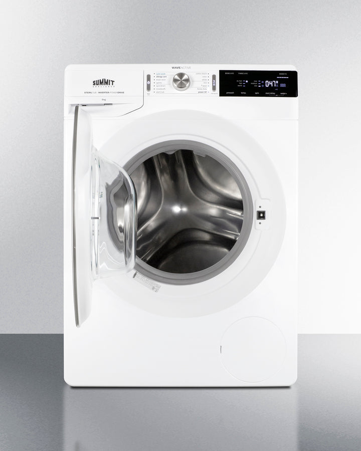 Designed and manufactured in Europe, Summit's ENERGY STAR certified SLW241W is a 24'' wide front loading washer designed for true convenience, energy savings, and pristine laundry care results. The SLW241W can wash up to 19.8 pounds of fabric inside the durable stainless steel drum, with a maximum speed of 1400 RPM and a choice of 14 wash programs. The dial wash cycle selector knob makes choosing a wash cycle easy, while the digital touchscreen display allows users to monitor the washer's progress. This unit has a classic white cabinet and glass door. It can be used for freestanding or recessed installation with 1'' side clearance, 1'' top clearance, and 2'' rear clearance. A pre-installed 3-pronged cord works with 208-240V outlets at 15 amps, while four adjustable leveling legs are included to ensure the unit is level on uneven surfaces. Primary wash programs include a cotton wash for black, color, or white clothing, as well as a heavy duty setting, prewash setting, and an auto wash option, which adjusts the duration of the wash depending on the size of the load of laundry. Specialty wash programs let you give the proper treatment to wool, down wear, (including pillows and jackets), sportswear, and loads with synthetic and mixed fabrics. The ''allergy care'' program offers careful but thorough cleaning for those with sensitive skin or skin allergies, while ''Power 59'' allows cleaning of smaller loads. The ''rinse/softening'' program softens or starches washed laundry, and the ''sterile tub'' program helps to remove detergent residue and bacteria for a cleaner performance. Additional features include a ''start/stop'' function allowing users to pause during a cycle to add or remove fabrics. A start delay function permits users to set the start time in 30-minute increments up to 24 hours, while TIMECARE mode shortens the cycle time for quick yet reliable washing. The pull-out detergent compartment makes measuring easy and clean. Environmentally-friendly performance features include ECOCARE mode that uses less water and power during its cycle, the ECOEYE setting displays information on water and power consumption, and a water level indicator lets users know how much water is in use for a greener performance. Low standby mode switches the display off after 5 minutes of inactivity for added energy savings. The SLW241W is an ideal choice for homes and apartments seeking full washer capacity in a slim-fitting design. This ENERGY STAR certified washer can be paired with the SLD242W heat pump dryer for a 24'' wide side-by-side or stackable set. NOTE: both units include their own 3-pronged power cords for use in separate 208-240V sockets.