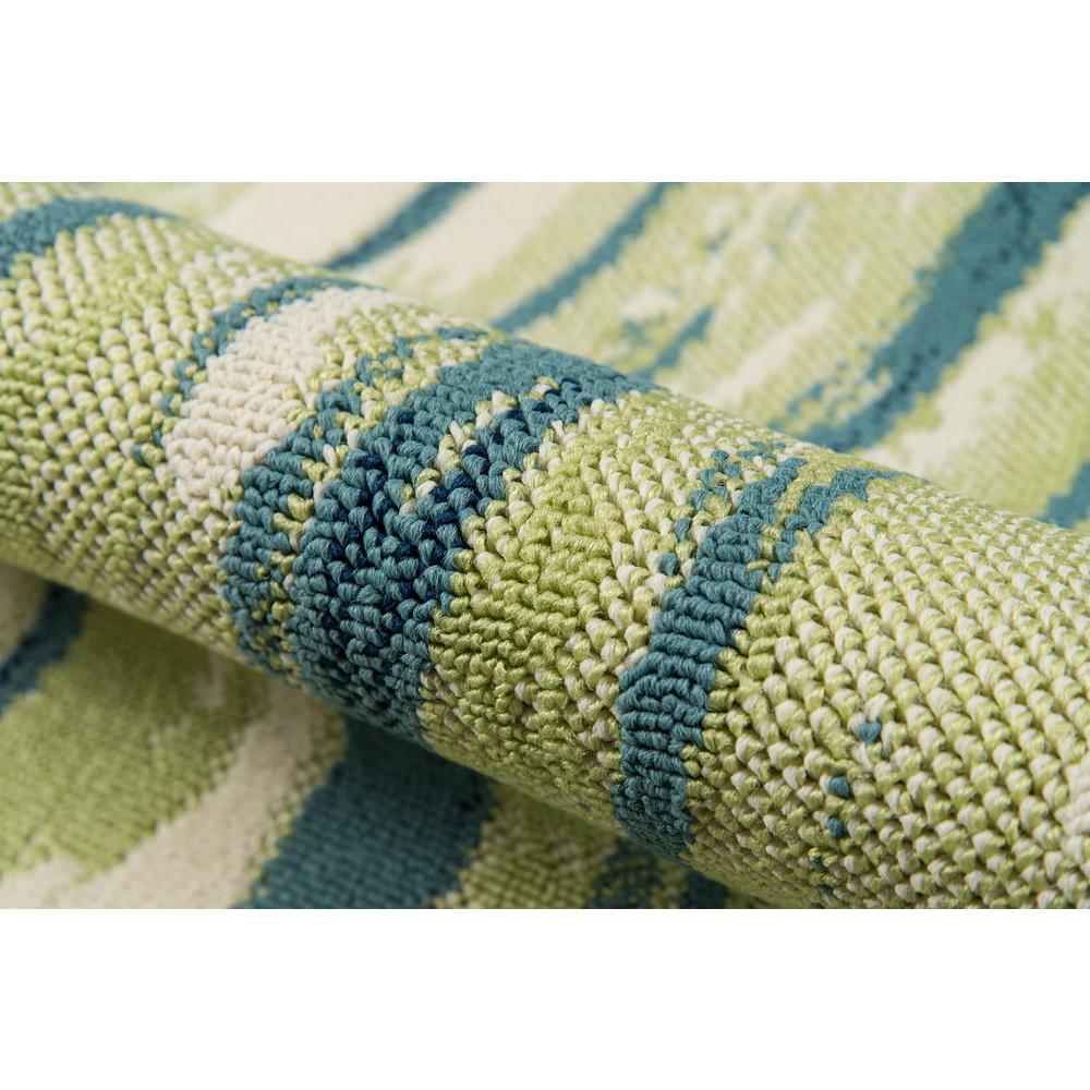 This elegant indoor/outdoor all-weather area rug offers everything you need to complete the ultimate outdoor room. Repeating stripes, diamonds, trellis and arabesque shapes meet nautical icons like ropes, anchors and waves, adding a luxe layer to all interior and exterior living spaces, including patios, porches and pool decks. Durable power-loomed construction ensures each decorative floorcovering transitions beautifully from season to season while the vibrant color palette and enduring polypropylene fibers offer endless design possibilities indoors and out. Product Specs: Product Height: