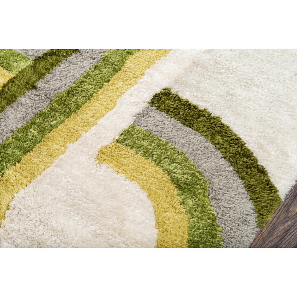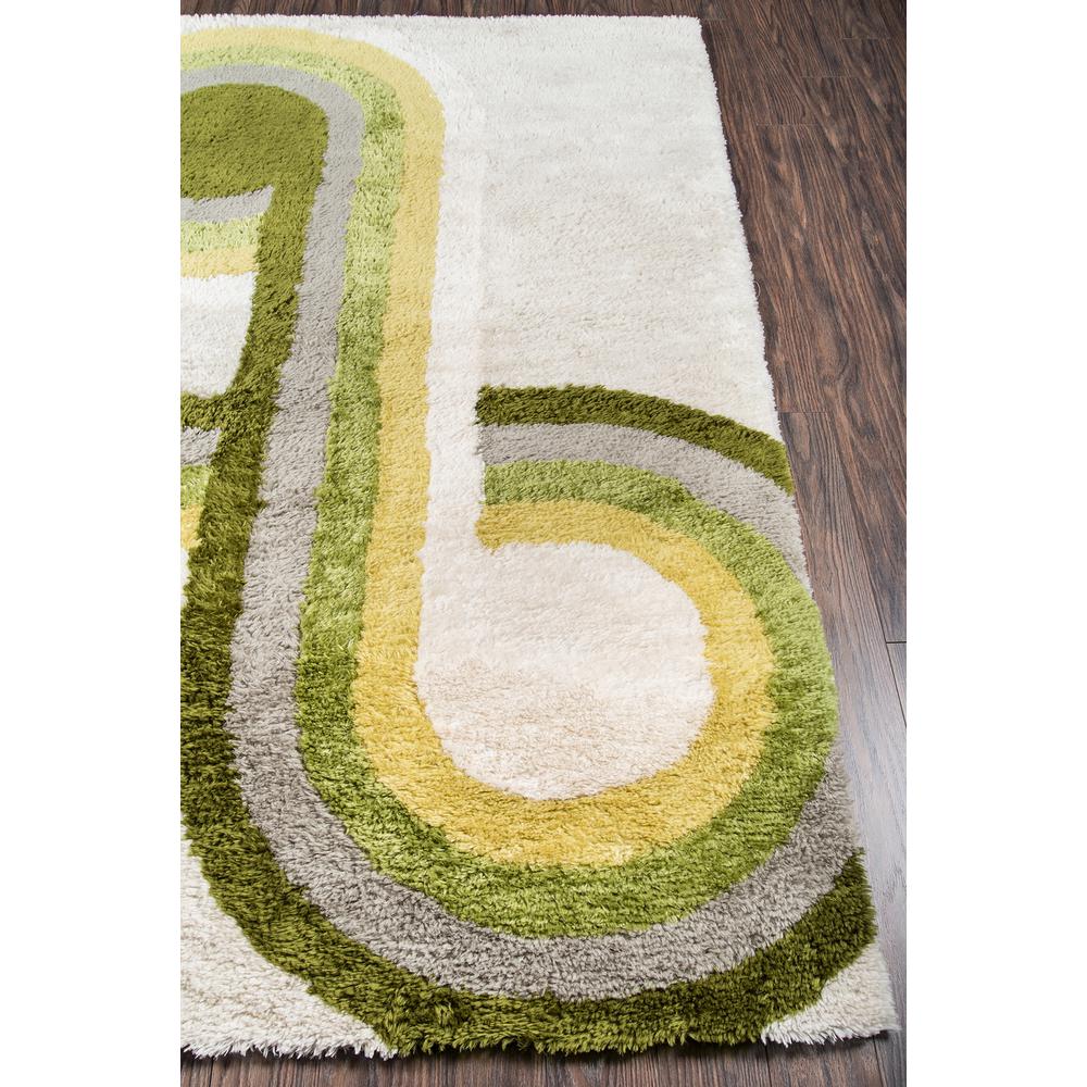Inspired by mid-century design with its groovy shapes and shaggy textures, this modern area rug features Scandinavian style straight from the 70s. Each decorative floorcovering reimagines retro swirls, prisms and curves in combinations of burgundy red, grass green, sky blue and soft pink. Artfully crafted from polyester threads, these hand-tufted rugs pair perfectly beneath an Eames chair, papasan or pouf.