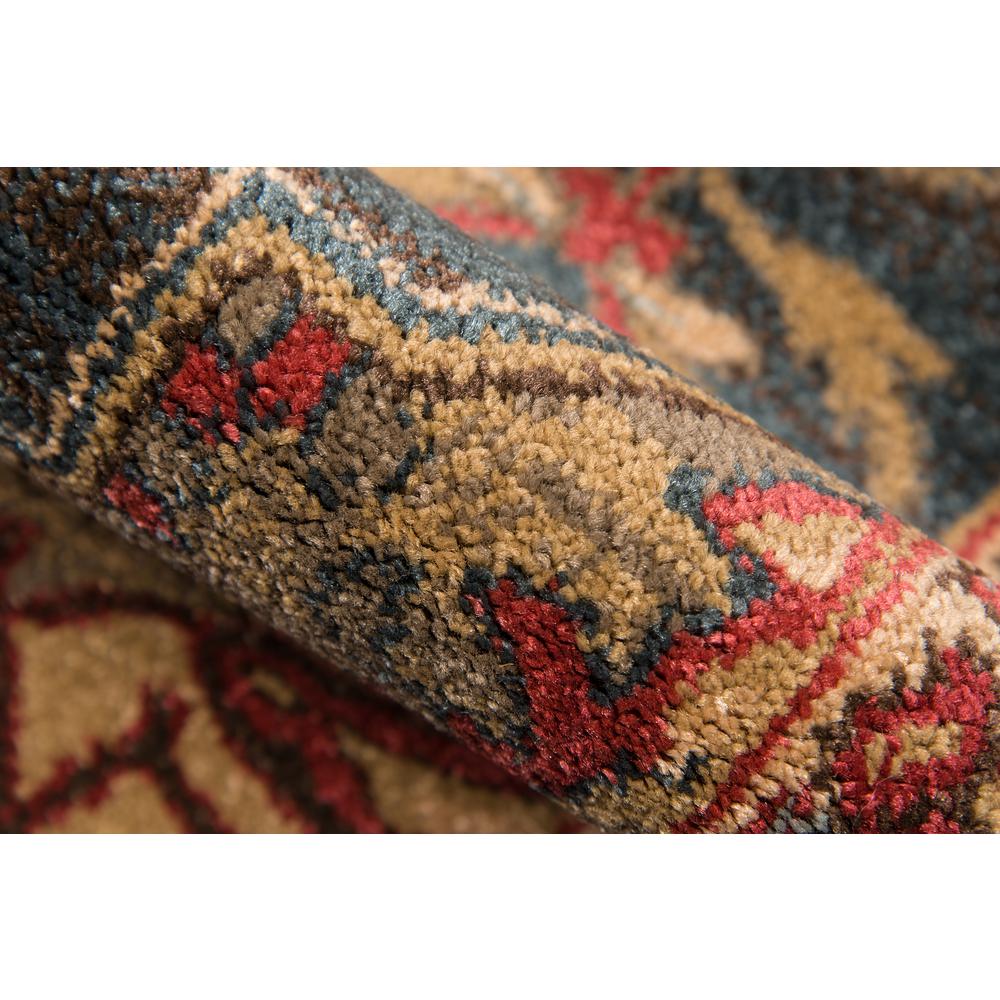 The ornamental elegance of this traditional area rug has deep roots in old world design motifs. Evoking the timeless visual elements inspired by classic Kazak carpets, an eye-catching geometric field of medallions, palmettes and flowers is surrounded by an intricate border in regal shades of crimson red, blue and gold. With references to centuries-old Heriz and Serapi rug patterns, each elaborate rug design is elegantly crafted from soft synthetic fibers, while power-loomed precision ensures this traditional floorcovering will truly stand the test of time. Product Specs: Product Height: