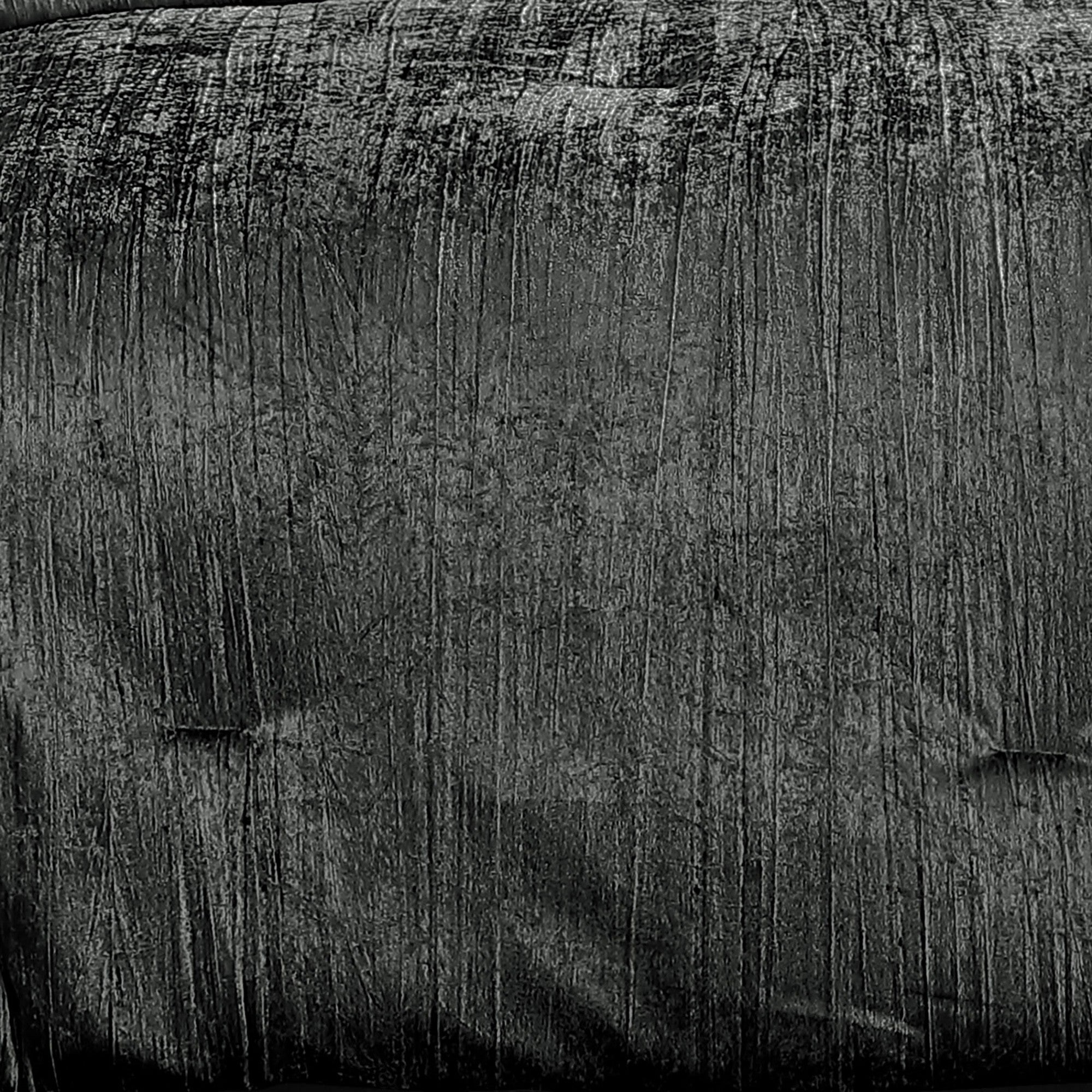 Centered around true comfort and elegant aesthetics, this seven piece king comforter set in gray is a staple in your master or guest bedroom. Featuring an ultra polyester velvet fabric with brushed backing, the crinkle textured front gives character to this quilted set. Generously filled with polyester for superior warmth. Check out our Jay collection for more options in color and size.