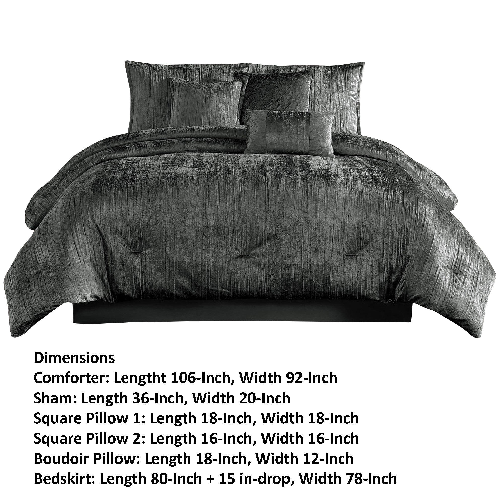 Jay 7 Piece King Comforter Set Polyester Velvet Deluxe Texture Gray BM283897 - Benzara