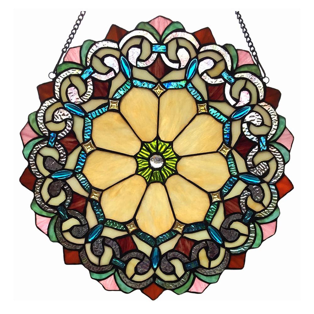 AYLA, a Victorian style stained glass window panel features a beautiful hand crafted design that will brighten up any room with it's unique beauty. Hand crafted from over 290 pieces of art glass and 19 glass beads. Main colors are yellow and blue. Handcrafted using the same techniques that were developed by Louis Comfort Tiffany in the early 1900s, this beautiful Tiffany-style piece contains hand-cut pieces of stained glass, each wrapped in fine copper foil. Product Specs: Product Height: