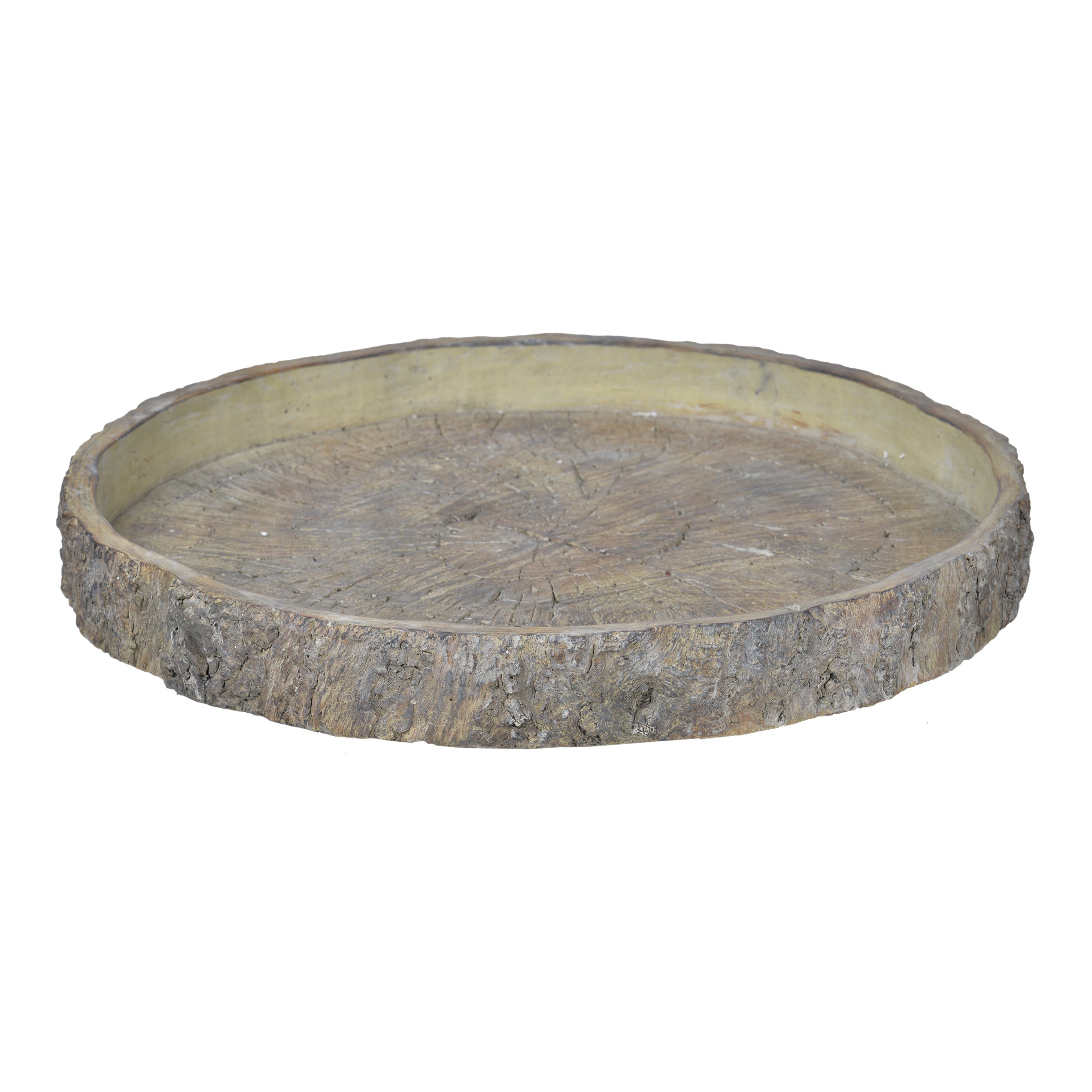 Composed of cement for facile care and designed to look like a slice of weathered tree trunk, this unique Round Log Plate with detailed faux wood look offers a nature inspired element to your existing decor. Whether used as part of a table centerpiece, to hold beverages or snacks at a garden party, or as a general decorative element anywhere in the home, this piece is sure to add beauty and function to your decor.