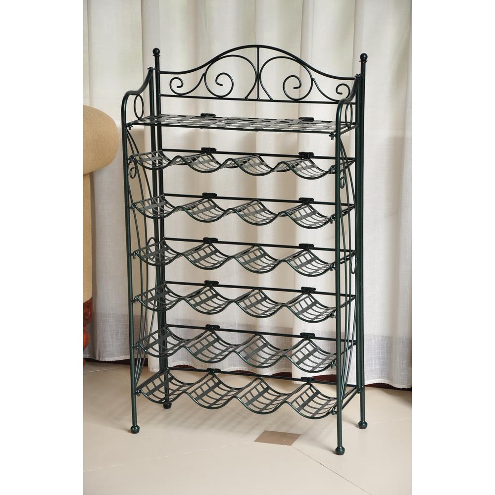 The elegance and functionality of this 24 bottle wine rack is a great addition to any home décor. Its made of iron for strength and durability and the scroll work adds to the beauty. Will hold 24 regular size wine bottles. Product Specs: Product Height: