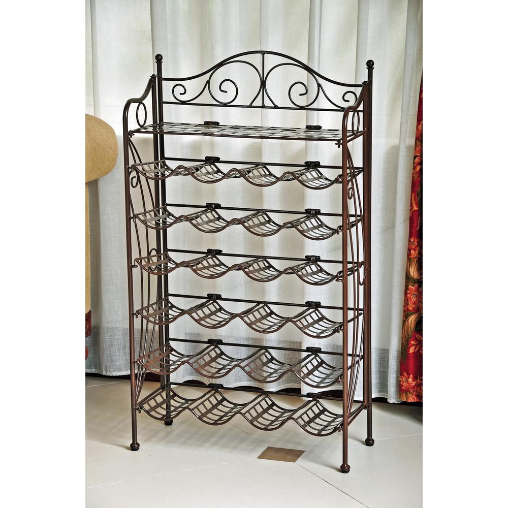 The elegance and functionality of this 24 bottle wine rack is a great addition to any home décor. Its made of iron for strength and durability and the scroll work adds to the beauty. Will hold 24 regular size wine bottles.