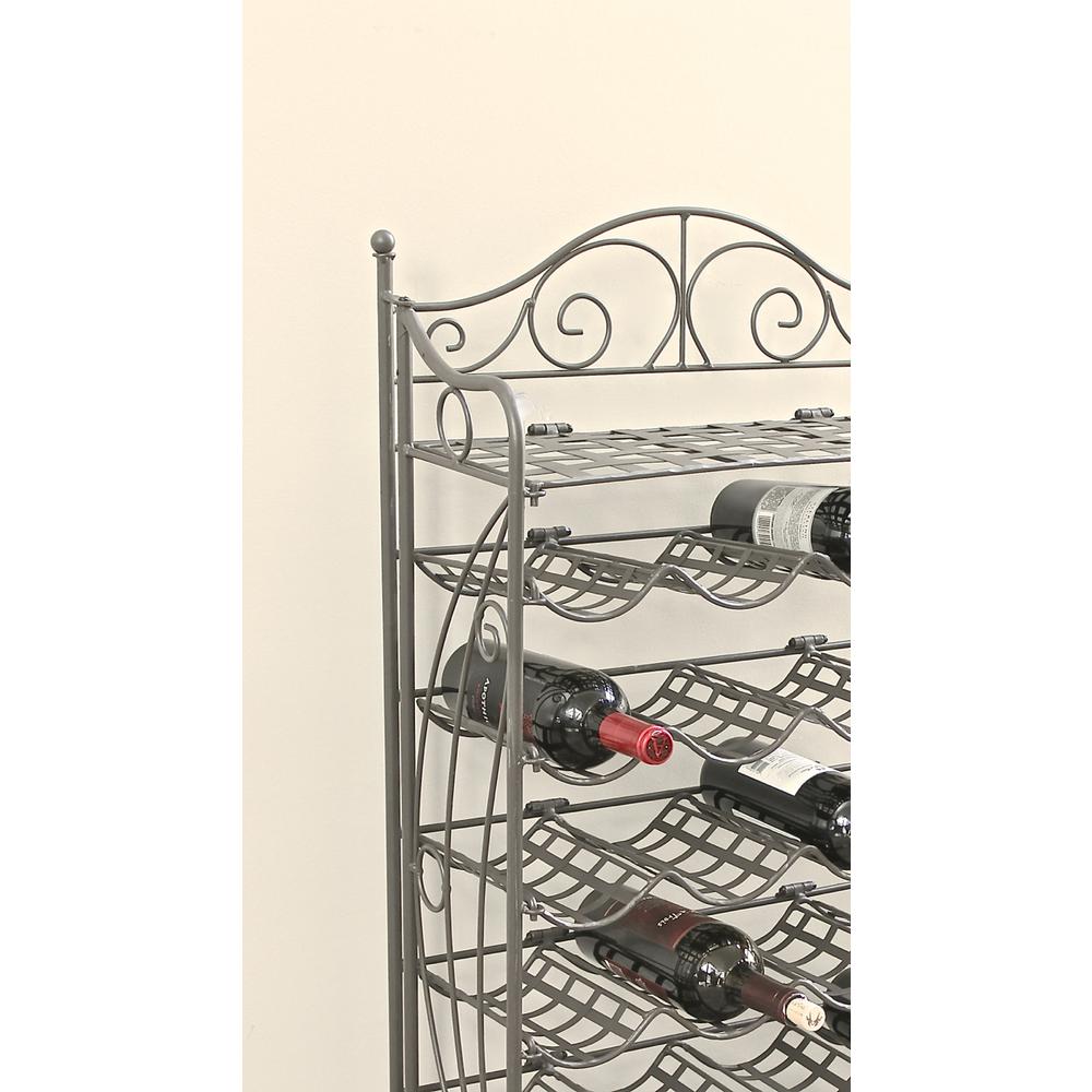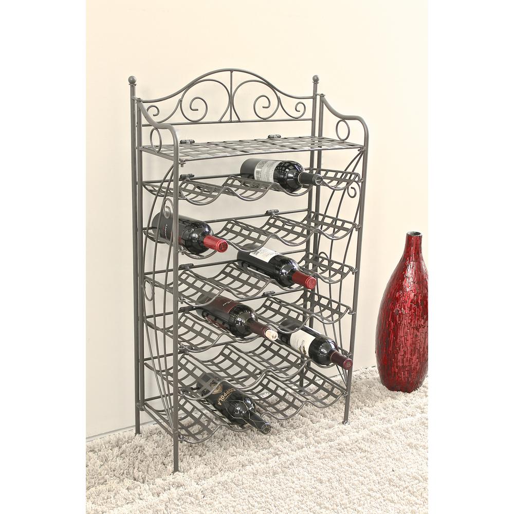 The elegance and functionality of this 24 bottle wine rack is a great addition to any home décor. Its made of iron for strength and durability and the scroll work adds to the beauty. Will hold 24 regular size wine bottles.