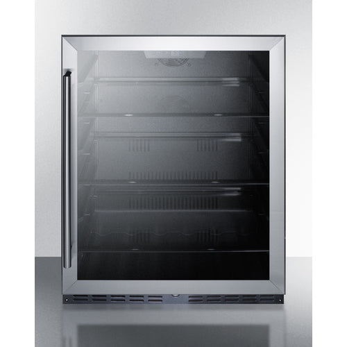 SUMMIT's extensive selection of built-in refrigerators brings quality and style to commercial settings designed to incorporate lower ADA compliant counter height.Sized with a convenient 24'' footprint, the AL57G is just 32'' high to fit under lower counters complying with ADA guidelines for accessibility in commercial settings. The fully finished black cabinet allows freestanding use, while the front-breathing system also allows this unit to be built-in with minimum clearance. This unit has a user-reversible double pane tempered glass door with attractive stainless steel trim. A stainless steel handle completes the look and a factory installed lock in the kickplate offers additional security. The flush back design helps to make cleaning easier, while the right angle cord offers added space savings.Inside, the AL57G utilizes frost-free operation with fan-forced cooling to ensure low maintenance and even temperature distribution. Recessed LED lighting offers an attractive yet efficient look. The digital thermostat makes it easy to manage the interior temperature. This unit includes adjustable glass shelves for flexible, spill-proof storage. The floor is specially slotted to hold bottles in place. Additional features include an open door alarm, high temperature alarm, and Sabbath mode setting that lets you disable some of the electrical elements during periods of observance.The AL57G refrigerator is ETL-S listed to NSF-7 commercial standards. With its deluxe style and user-friendly features, this unit is the perfect choice for bars, restaurants, hotel lobbies, waiting areas, and other settings looking to store beverages under the proper conditions.