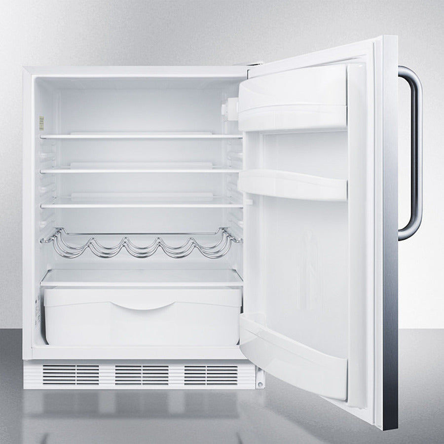 Removable scalloped wine shelf is included to store champagne and wine bottles