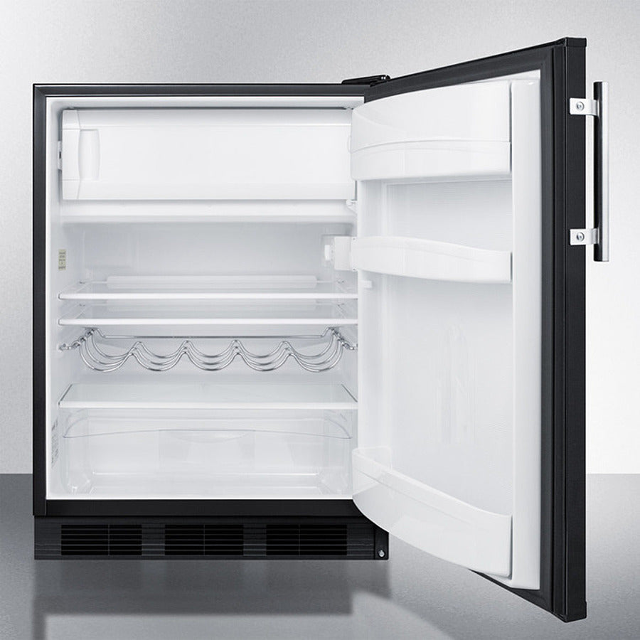 Removable scalloped wine shelf is included to store champagne and wine bottles