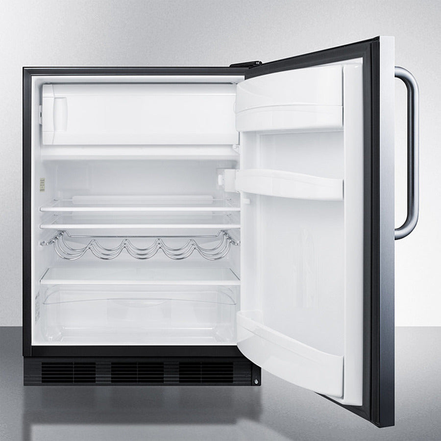 Built-In Undercounter Refrigerator/Freezer Cycle Defrost With A Deluxe Interior, Stainless Steel Exterior, And Towel Bar Handle - CT663BKCSS Summit