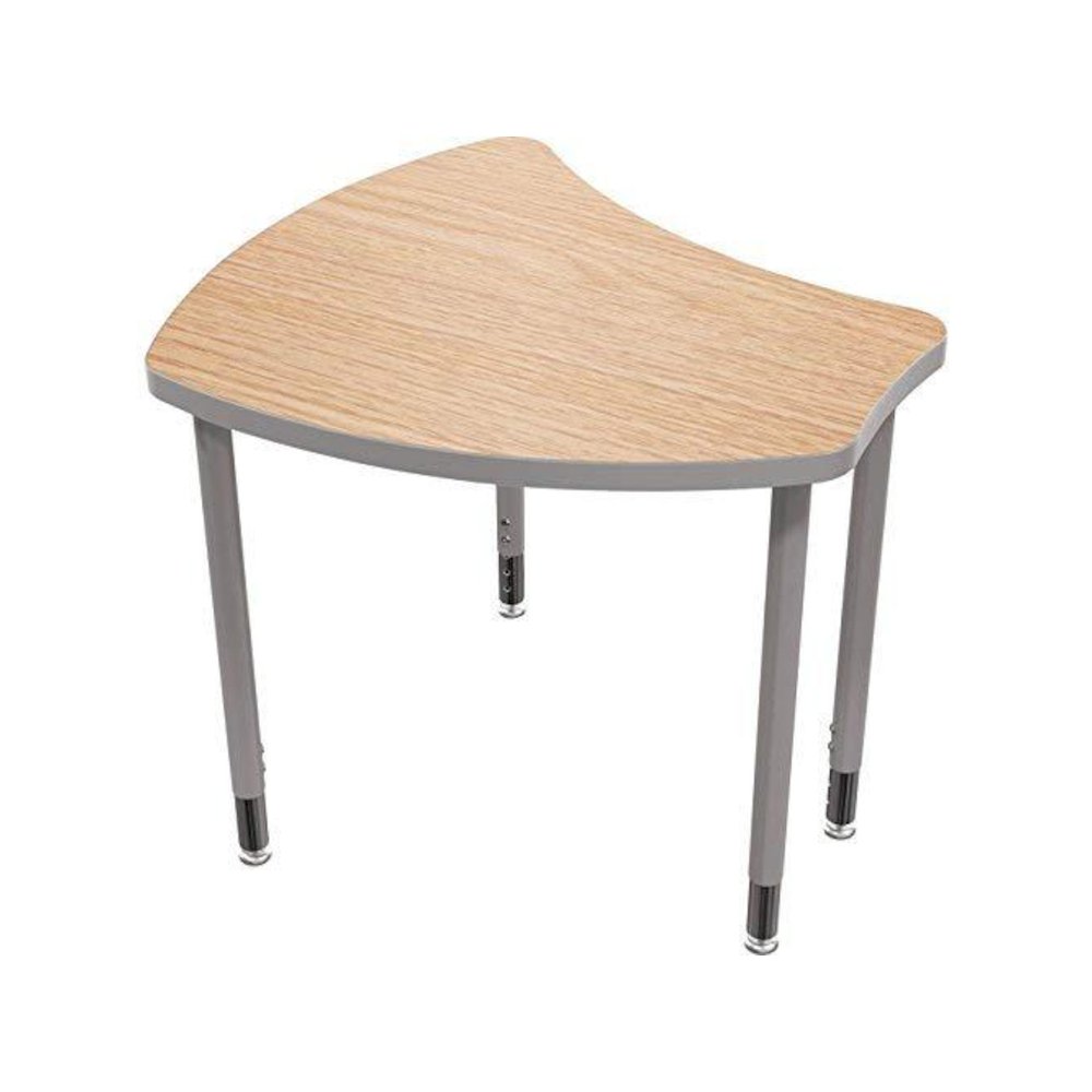 Shapes Desk brings simplicity and functionality in a customizable package made to any classroom or study setting. Offering quick and easy assembly, numerous group configurations, height adjustability, and custom laminates. Join the Shapes Desk together in a number of ways to fit your needs. The highly versatile table’s ergonomic shape provides flexibility and workspace comfort. Allows easy left or right hand seating. Available in two sizes for space saving ergonomics. Adjustable from 22'' to 32''H in 1'' increments. 1.25'' top with tubular steel leg available in black or platinum with chrome insert. Choose from a variety of laminate colors and T-mold edge band options to match your table leg. Tops and edge are also customizable. Call for more information.