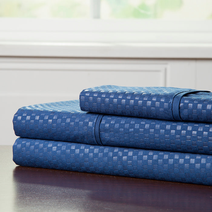The timeless checkered embossed design on these sheets balances easily with any home decor. The alluring finish brings life to the soft and breathable fabric, combining style with ultimate leisure. This attractive set is also offered in multiple colors and sizes to match bedrooms for adults, kids, or guests.