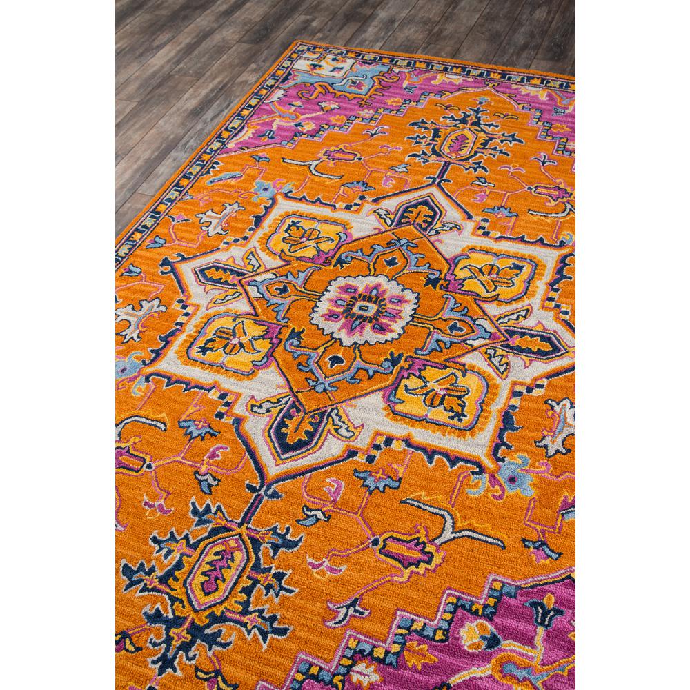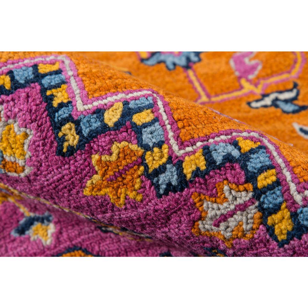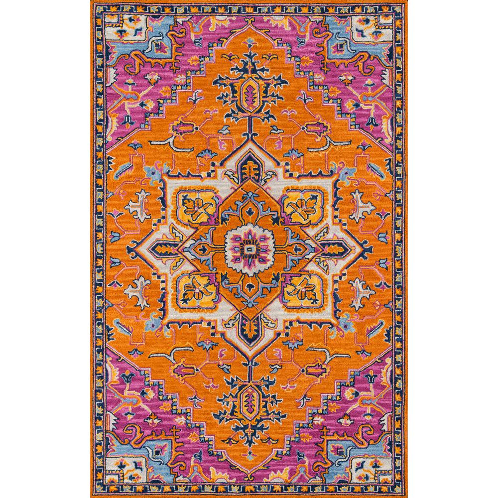The saturated shades of this decorative area rug reinvent the classic Persian carpet in a vivid color palette. The captivating assortment offers a modern interpretation of traditional rug motifs, as vibrant pink, orange, blue and yellow tones form flowers, vines, palmettes and medallions in colors beautiful and bold. Hand tufted from 100% natural wool, each floorcovering makes a dramatic design statement as a focal point on floors throughout the home. Product Specs: Product Height: